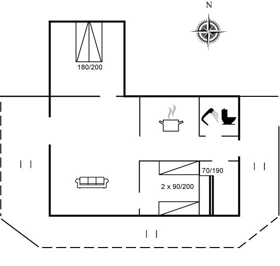 Der er i alt 2 soveværelser. Sovepladserne fordeler sig på: 2 sovepladser i dobbeltseng. 2 sovepladser i enkeltsenge.
