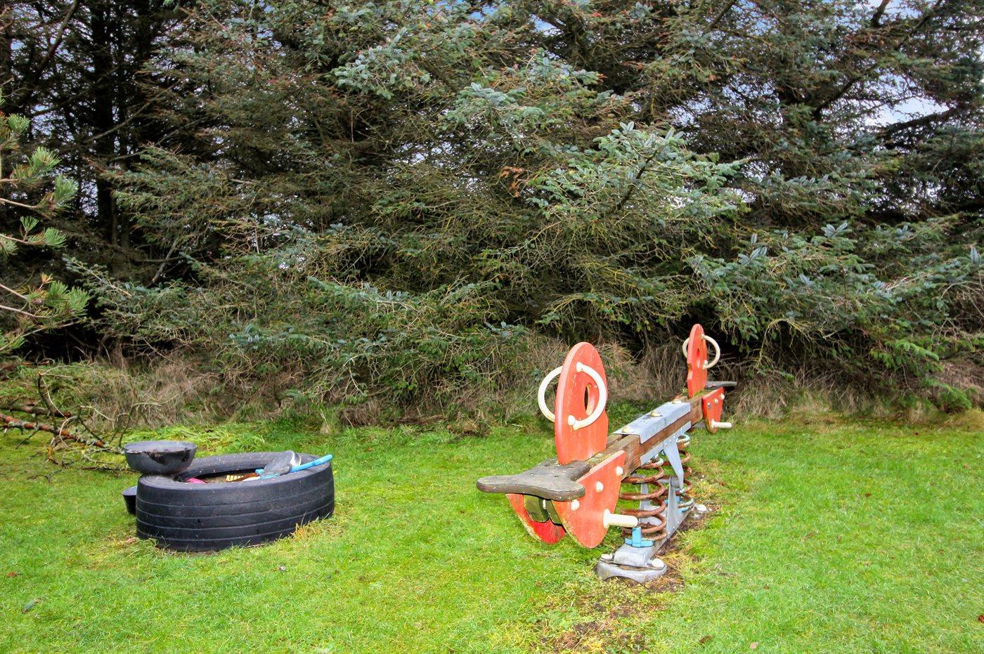 Ferieboligen er beliggende på en 2500 m² stor naturgrund. Der er 500 m til havet. Nærmeste forretning er beliggende i en afstand af 6000 m. Til ferieboligen hører 50 m² terrasseareal. Der er redskabsrum. Sandkasse.