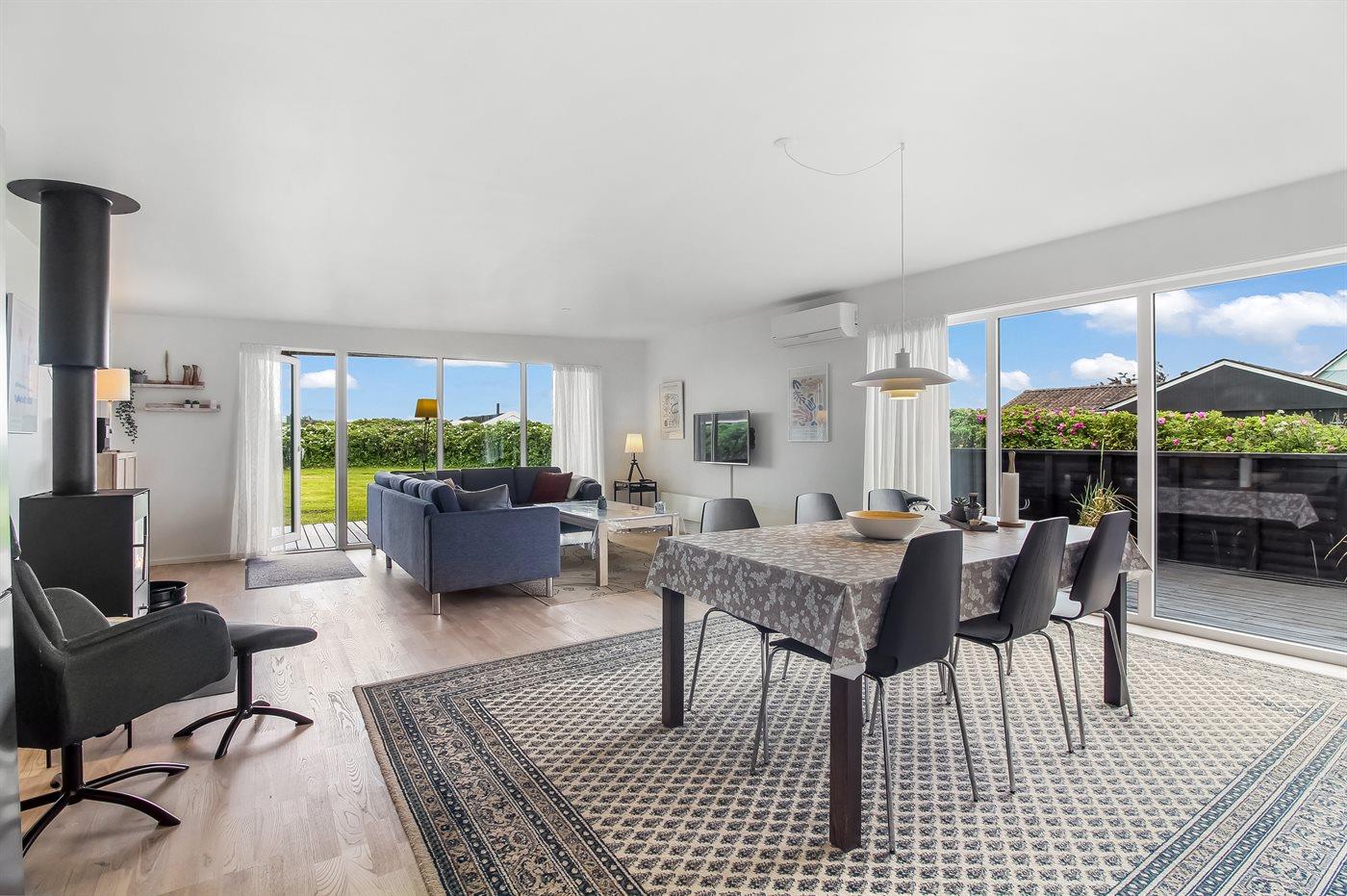 Skulle det være en kold sommerdag, så kan man krybe ind i sofaen og nyde brændeovnens varme eller tage et spil ved spisebordet. Skal det være lidt mere action så er der også bordfodbold i huset.
