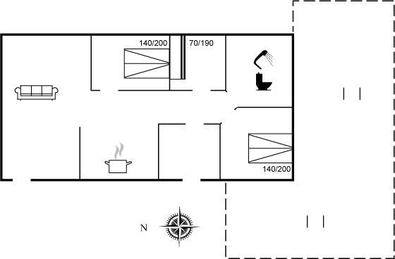 Der er i alt 3 soveværelser. Sovepladserne fordeler sig på: 4 sovepladser i dobbeltsenge. 2 sovepladser i køjeseng.