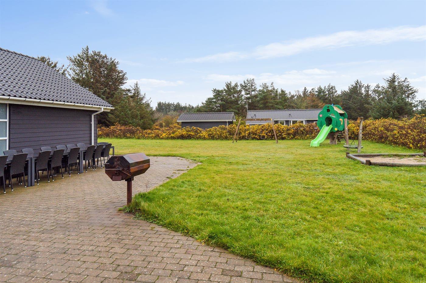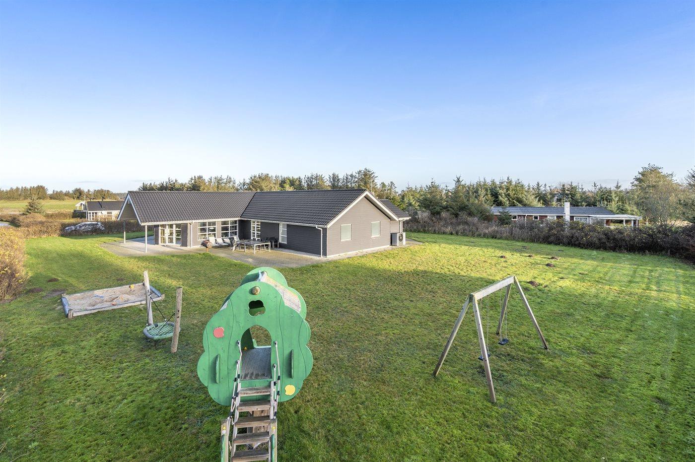 Ferieboligen er beliggende på en 2500 m² stor naturgrund. Der er 500 m til havet. Nærmeste forretning er beliggende i en afstand af 5000 m. Der er en golfbane i en afstand af 5000 m. Til ferieboligen hører 50 m² terrasseareal. Desuden er der 25 m² overdækket terrasse. Gynge. Sandkasse. Rutchebane. Parkering ved ferieboligen.