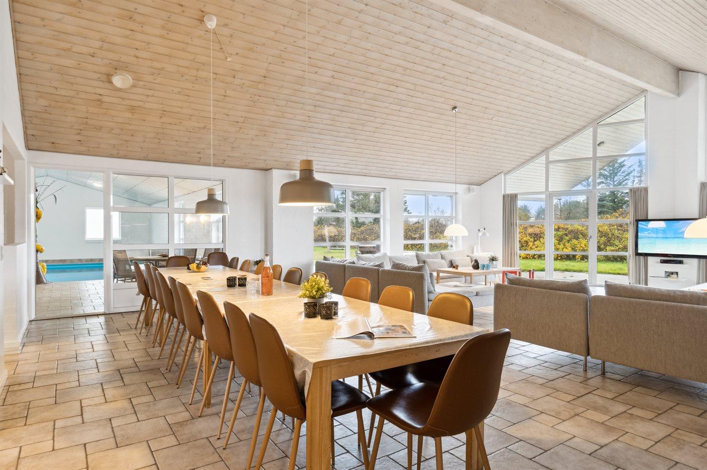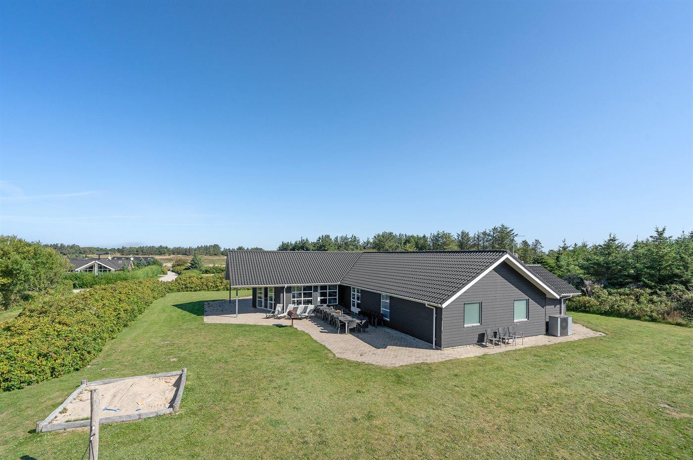 Sommerhuset egner sig til 20 personer samt 1 barn op til 3 år. Ferieboligen er på 415 m², er i 2 plan, og er bygget i 2005. Det er tilladt at medbringe 5 husdyr. Hele ferieboligen har gulvvarme. Ferieboligen har vaskemaskine. Tørretumbler. Frysekapacitet på 100 liter. Der er desuden brændeovn. Til de små er der 2 stk. barnestole.