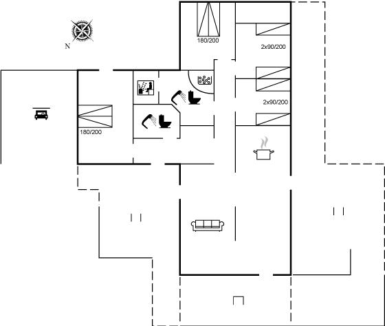Der er i alt 4 soveværelser. Sovepladserne fordeler sig på: 4 sovepladser i dobbeltsenge. 4 sovepladser i enkeltsenge. Derudover er der 1 stk. barneseng.