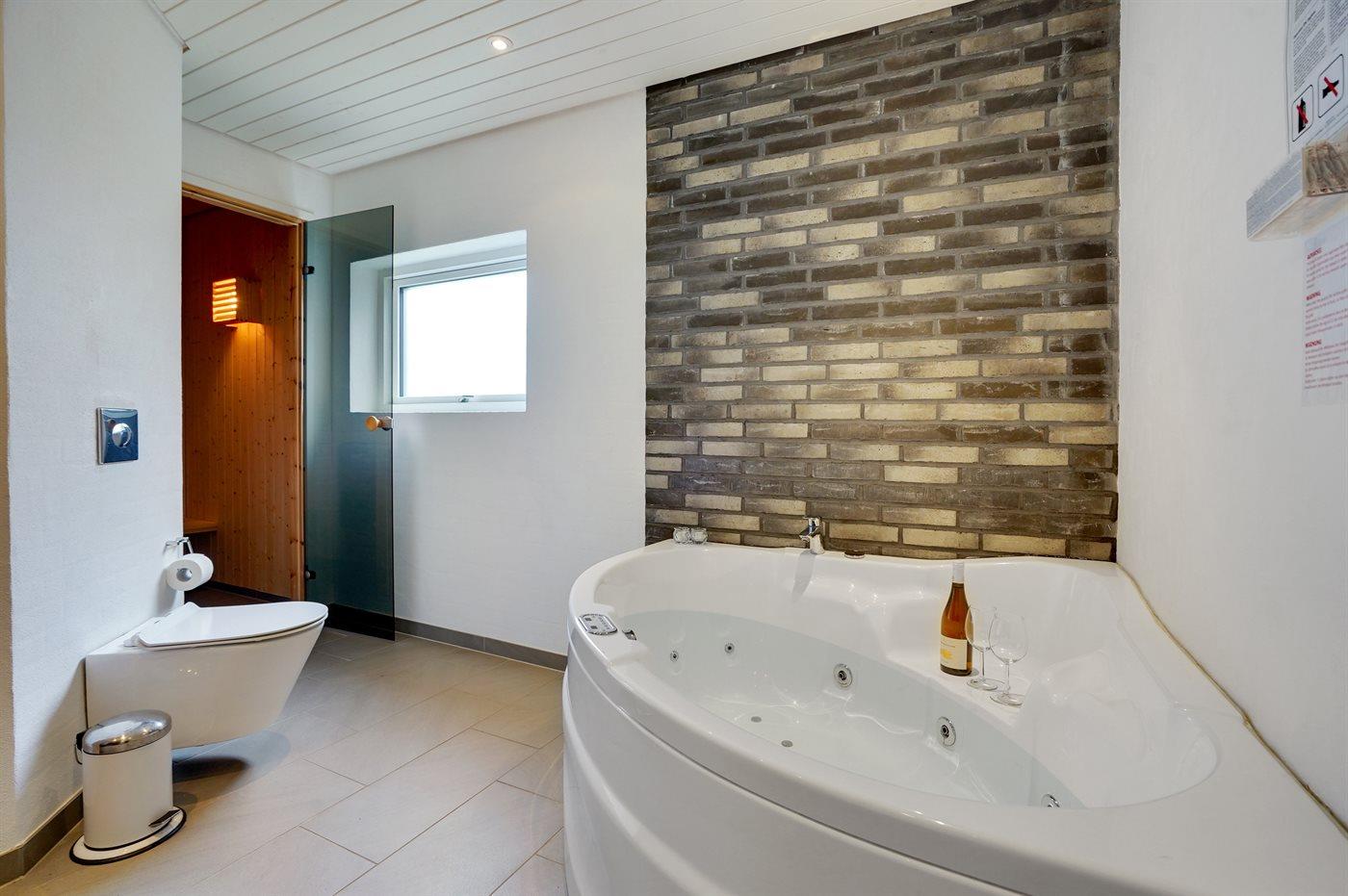 Der er 2 badeværelser med bruseniche og 2 toiletter. Der er gulvvarme på 2 badeværelser. I saunaen er der mulighed for afslapning.