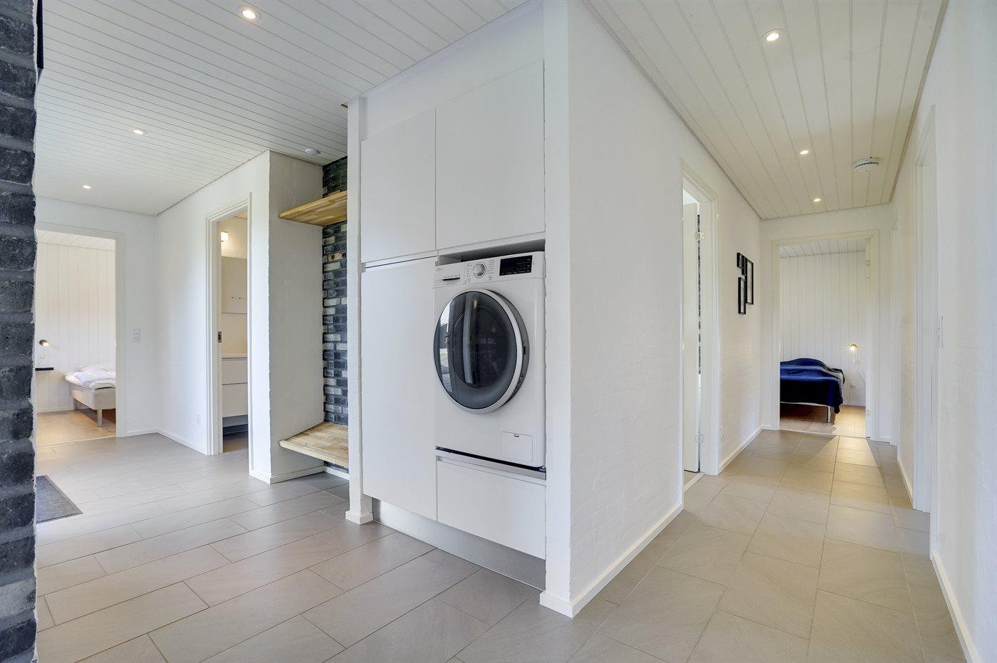 For enden af en blind vej ligger dette dejlige sommerhus, som giver den store familie nogle fantastiske forudsætninger for den ideelle ferie. Der er store terrasser på tre sider af huset, så her er der altid mulighed for at finde et godt sted at opholde sig i det fri.