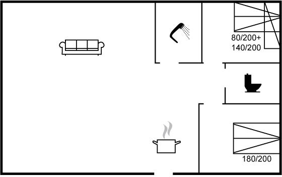 Der er i alt 2 soveværelser. Sovepladserne fordeler sig på: 4 sovepladser i dobbeltsenge.1 soveplads i køjeseng.