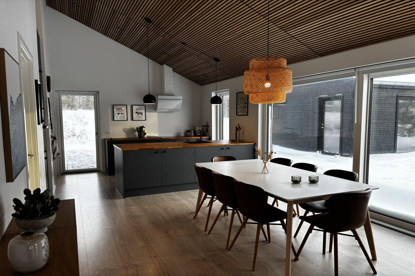 Køkkenet er udstyret med 1 køleskab. Der er 4 induktionskogeplader, varmluftovn, mikrobølgeovn samt opvaskemaskine.