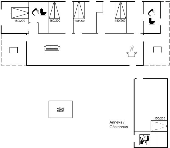 Der er i alt 4 soveværelser. Sovepladserne fordeler sig på: 8 sovepladser i dobbeltsenge. 2 sovepladser i sovesofa (enkelt). 2 af disse sovepladser befinder sig i anneks. I annekset er der gulvvarme.
