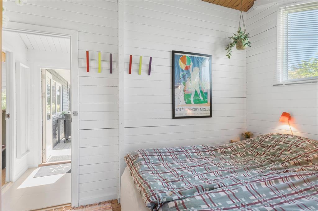 Skovvej ender blindt meget tæt på sommerhuset, så der er ikke mange forbipasserende. Og selvom beliggenheden er tilbagetrukket, har I samtidig nem adgang til Nr. Lyngbys flotte kyststrækning, for der er kort gåafstand til den stejle klint, der markerer overgangen til stranden. Omtrent en kilometer væk ligger Nr. Lyngbys populære solnedgangsplads, og her er der også nedkørsel til stranden, for det er nemlig tilladt at køre i bil på den smukke sandstrand. Feriedagene kan oplagt bruges på at bade, fiske og gå lange ture langs med kysten – eventuelt med små afbræk i form af udflugter til Løkken, Family Farm Fun Park og Rubjerg Knude.