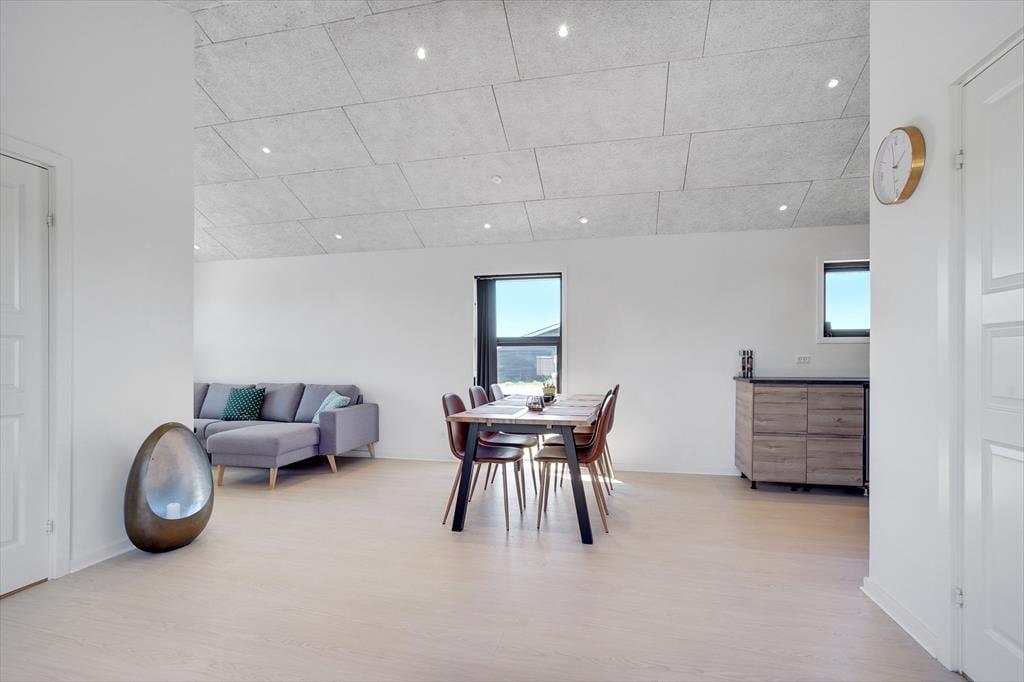 I får en lys og lækker ramme om ferielivet, når det udspiller sig her på Ulstrupvej 19 i Nr. Lyngby. Vejen er lukket, og I har kort afstand til toppen af den stejle klint, hvis I vil nyde udsigten over Vesterhavet.