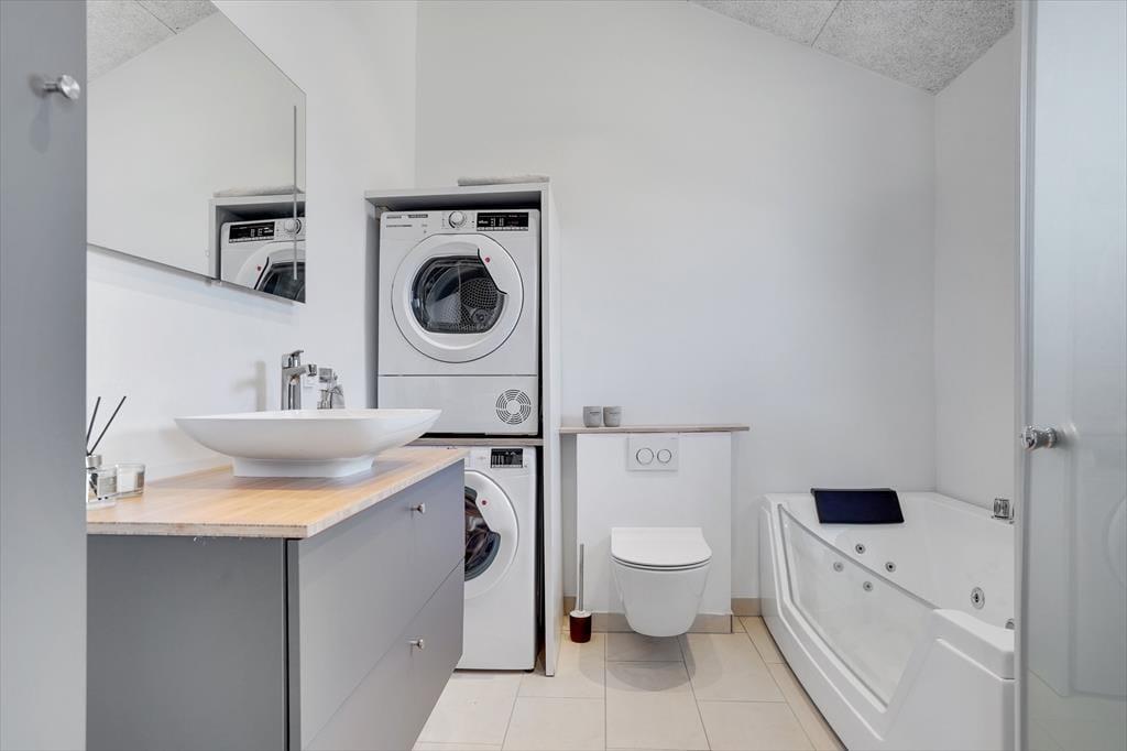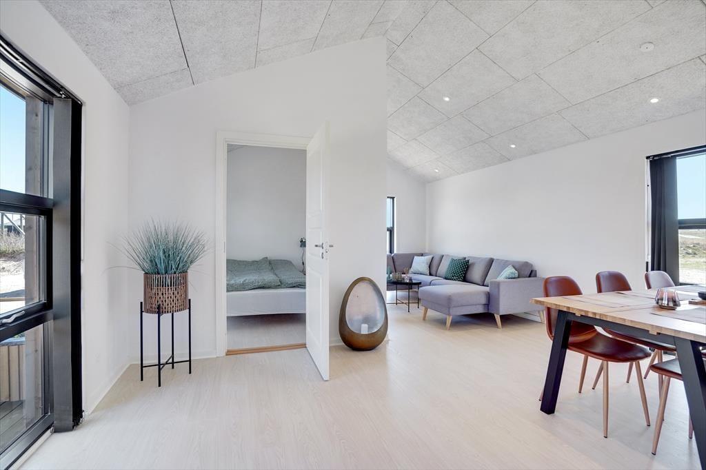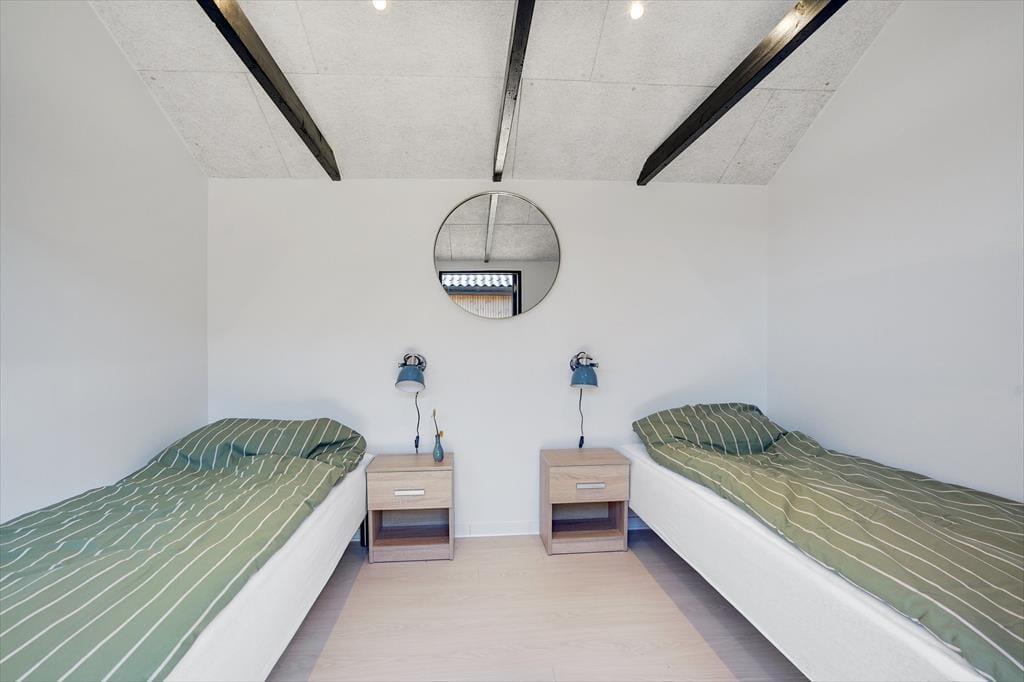 Efter en omfattende renovering i 2020 har sommerhuset fået sin flotte fremtoning med lys træfacade og en stilren indretning med velvalgte detaljer. Et lækkert køkken er integreret med stuen, der byder på spisebord og en hyggelig sofakrog med fladskærms-tv. På badeværelset er der ikke bare plads til en vaskesøjle og en bruseniche, men også et badekar, så I kan afslutte feriedagene med wellness og afslapning. Sommerhusets planløsning byder også på et soveværelse med dobbeltseng, og hvis I har brug for flere sengepladser, er der to ekstra værelser i annekset – det ene er med dobbeltseng og det andet med to enkeltsenge.