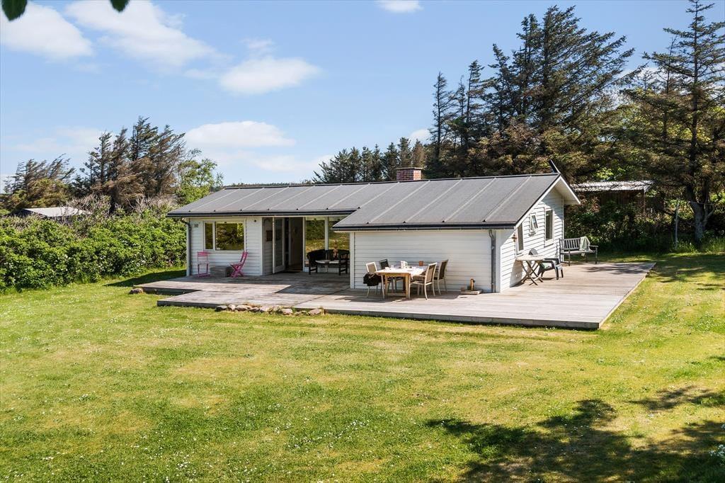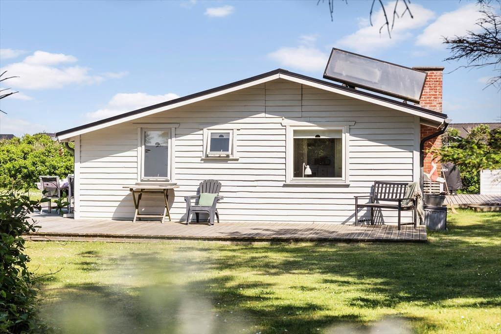 Dette skønne sommerhus er beliggende for enden af en blind stikvej i Nr. Lyngby. Her kan I virkelig nyde naturen og roen. Huset er beliggende på en stor og lukket grund, som grænser op til søen og Hærvejen, som er en landskendt vandrerute. Fra grunden og husets terrasse, kan I derfor kaste et blik på både søen og havet.