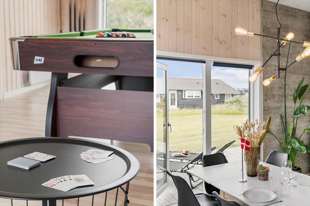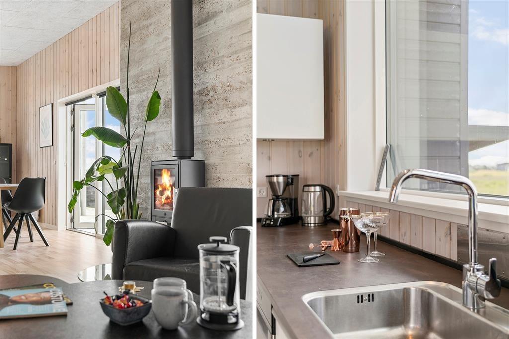 Der er lagt op til mange hyggelige timer i dette velindrettede sommerhus, hvor planløsningen er gennemtænkt og skabt til samvær. Køkkenet ligger i åben forbindelse med stuen, så du kan holde øje med gryderne, mens samtalerne flyder frit omkring spisebordet eller i sofagruppen ved brændeovnen. Her er der skruet op for feriestemningen med et lyst og luftigt interiør, hvor store vinduespartier lader lyset strømme ind. På de køligere dage er det en ren fornøjelse at tænde op i brændeovnen og mærke varmen brede sig i hele rummet – måske mens regnen stille trommer mod ruden. Sommerhuset rummer tre gode soveværelser og to badeværelser, så der er god plads til, at flere generationer kan være på ferie sammen. Vil du forkæle dig selv lidt ekstra, venter der en sauna, hvor du kan læne dig tilbage og lade roen sænke sig. Og i aktivitetsrummet er der lagt op til timevis af sjov, når I dyster i bordfodbold eller finder brætspillene frem.