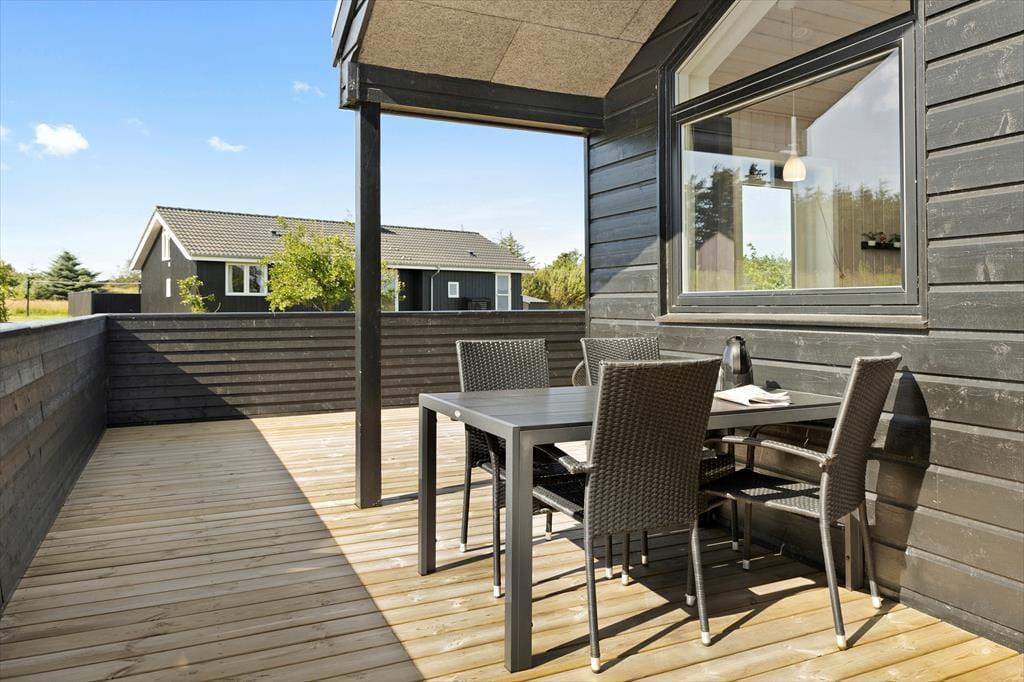 Sommerhusets store terrasse indbyder til afslapning og udendørs hygge. Her kan du nyde morgensolen med en kop kaffe, grille lækre middage eller bare slappe af i en liggestol med en god bog. Terrassen er rummelig og godt afskærmet, så du kan finde både sol og skygge hele dagen. Haven er perfekt til leg og boldspil, og der er god plads til både børn og hund til at boltre sig på den store grund. Her er der virkelig mulighed for at komme helt ned i gear og nyde de fredelige omgivelser, mens du lytter til fuglesang og mærker den friske havluft.