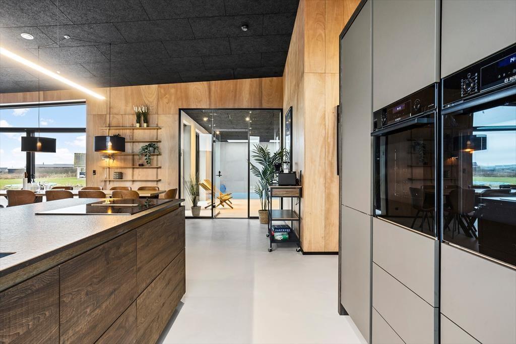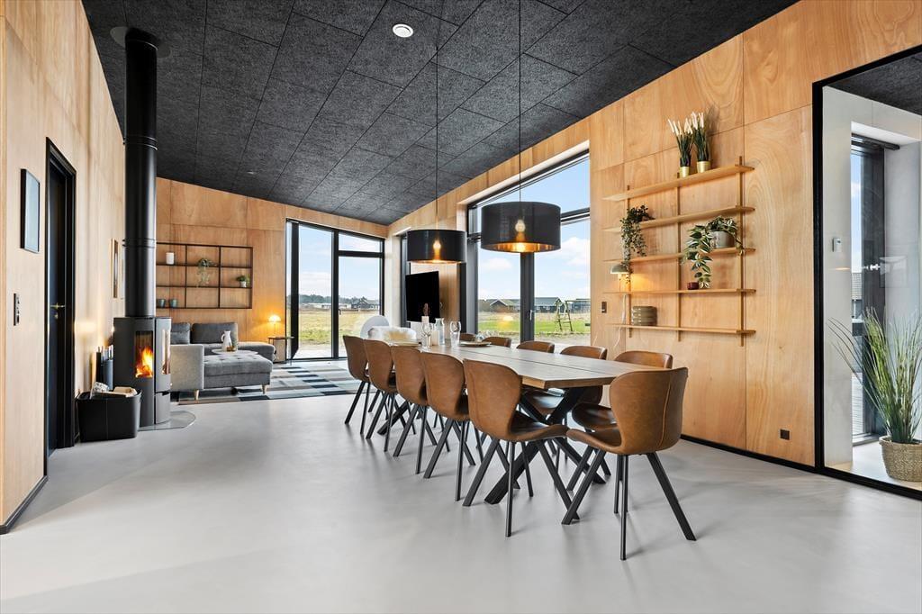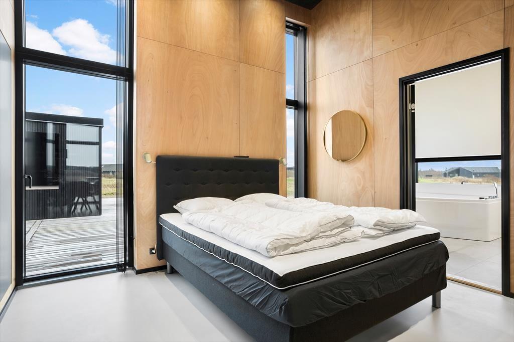 Det elegante sommerhus er opført i kvalitetsmaterialer og har en gennemført moderne indretning, som straks byder jer velkommen. Hjertet af huset er det åbne køkkenalrum, hvor stue og køkken smelter sammen og giver masser af plads til både hygge og fælles madlavning. Store vinduespartier giver et fantastisk lysindfald, så I kan nyde udsigten til naturen omkring jer, mens feriedagene langsomt skrider frem. De fire rummelige soveværelser er perfekte til både familier og vennegrupper, og med to badeværelser er der altid mulighed for privatliv og ro. Badeværelset med spabad og adgang til sauna ved poolområdet er en luksus oplevelse, hvor I kan koble helt af og nyde en stille stund, mens I forkæles af den lune vandmassage.