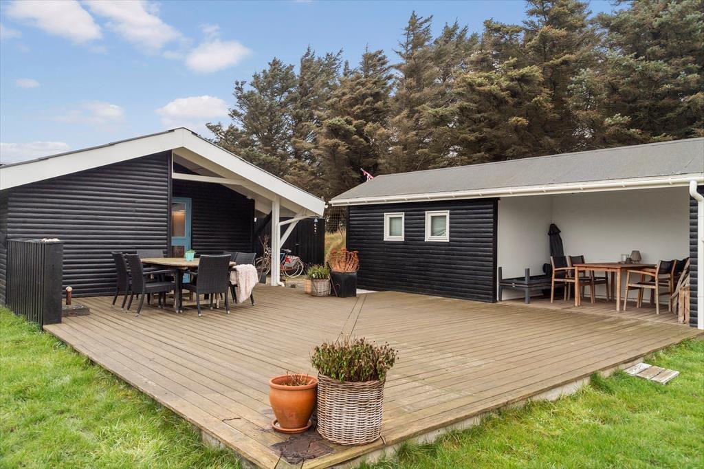 Udenfor er der flere skønne terrasser, hvor du kan nyde den friske luft og de solrige dage. Den overdækkede terrasse giver mulighed for at sidde og hygge sig, selv når vejret ikke er helt med på noterne. De store solrige terrasser er perfekte til både afslapning på en liggestol og til hyggelige måltider med familie og venner. Den private og ugenerte have giver plads til leg og afslapning, og her kan du virkelig komme ned i gear.