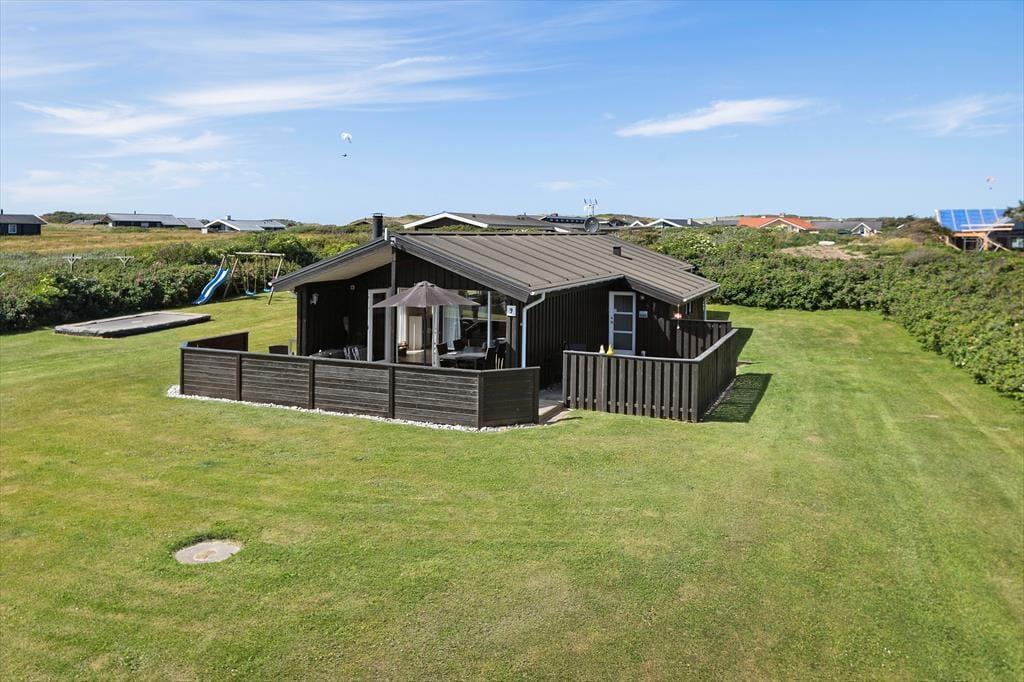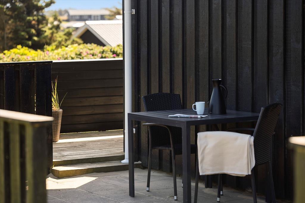 Det er ikke kun indenfor, at Delfinvej 9 indbyder til hygge – udenfor venter flere dejlige terrasseafdelinger, hvor du kan slappe af fra morgen til aften. På den sydvendte terrasse kan du nyde et måltid under åben himmel med udsigt til Vesterhavet, mens solen langsomt glider mod horisonten. Det er oplagt at begynde dagen med friskbrygget kaffe og morgensol, og afslutte den med grillmad og stjerneskud på himlen. Den hyggelige grund er perfekt til børnefamilier, da der også er faciliteter til leg og bevægelse – her kan børnene lege frit, mens de voksne finder ro i liggestolen. Alt i alt får du en skøn oase, hvor naturen og nærværet er i centrum, og hvor ferien udspiller sig i det tempo, du selv vælger.