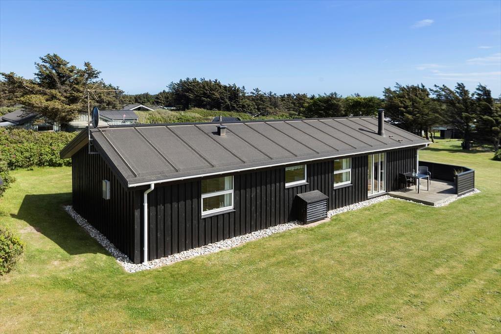 Sommerhuset ligger i det fredelige og naturskønne område Nr. Lyngby – kendt for sin stejle kyst, brede sandstrand og dramatiske natur. Fra huset er der kun få minutters gang til Vesterhavet, og her kan du hver dag tage en frisk dukkert, gå barfodet i sandet eller bare sidde og nyde det betagende syn af bølgerne, der slår mod land. Der er ikke langt til charmerende Løkken, hvor du finder alt fra hyggelige caféer og restauranter til kunstgallerier og livlige sommerbutikker. Her kan du opleve ægte feriestemning, besøge det gamle badehotel eller tage børnene med på en ispause efter en lang dag på stranden. Vil du opleve den rå vestjyske natur, kan du tage turen til Rubjerg Knude Fyr og nyde udsigten fra toppen af klitten – en uforglemmelig naturoplevelse, der kun ligger en kort køretur væk.