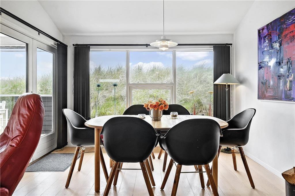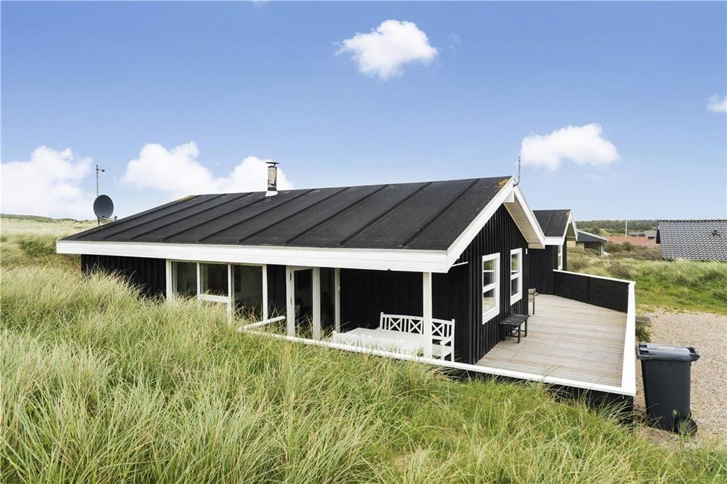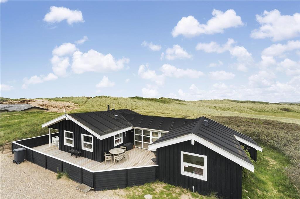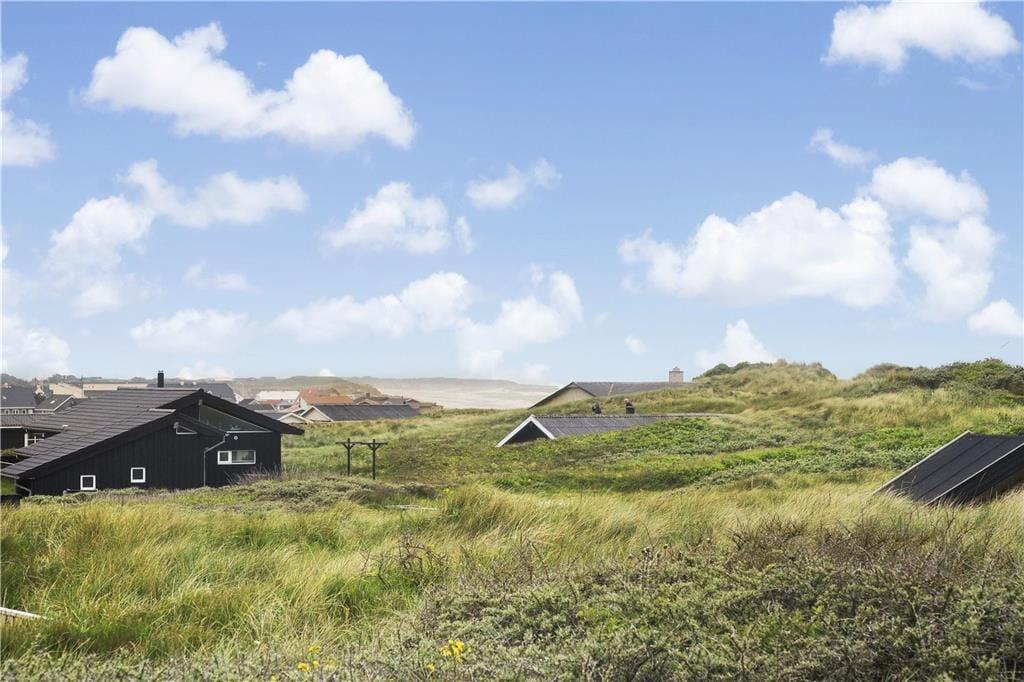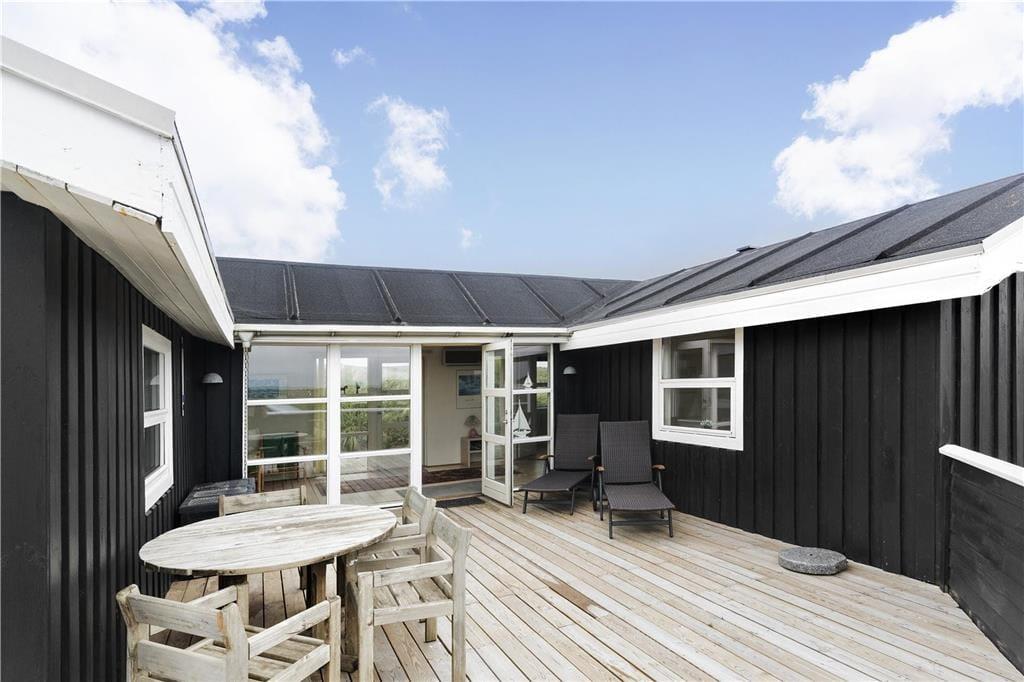 Huset er beliggende på en pragtfuld klitgrund lige bag første klitrække. Fra stuen er der adgang til den ene aflukkede terrasse, som også er delvist overdækket, og har man børn og hunde med på ferien, kan de trygt lege på den lukkede del af terrassen, hvor man også kan finde læ for den til tider drilske Vestenvind. På begge terrasser er der gode muligheder for at nyde sommerens sol og varme samt de fantastiske omgivelser og den flotte natur.
