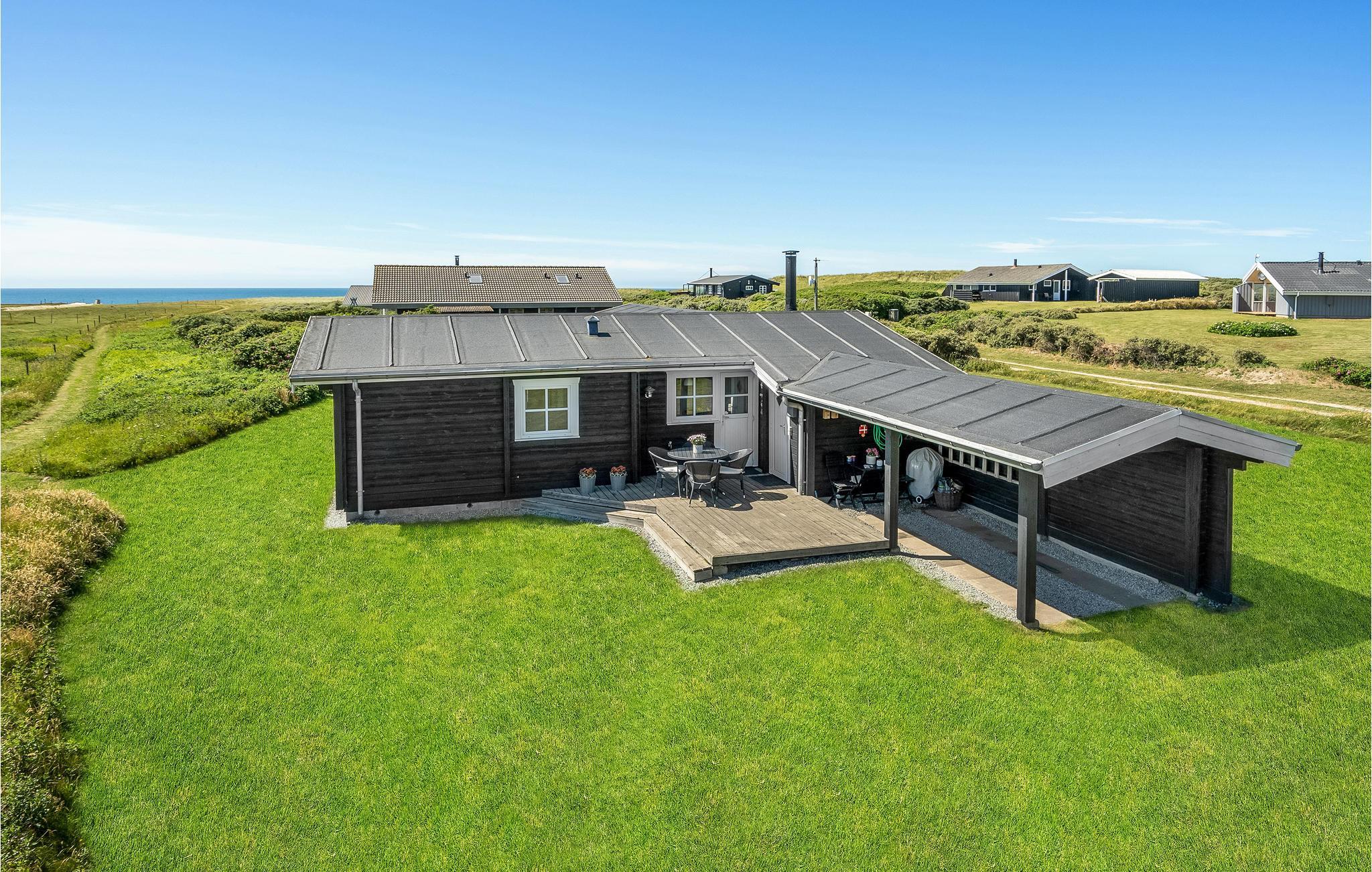 Der er udsigt til åbne arealer og det altid betagende Vesterhav fra dette velholdte bjælkehus, der er lyst og hyggeligt møbleret. Nyd livet på terrassen der er afskærmet af huset på to sider, så her er dejligt læ. Sid under den overdækkede del også længe efter duggen og mørket er faldet er faldet. Til børnene er der gynge og sandkasse til mange timers leg og god plads til boldspil og andre sjove udendørs aktiviteter. Løkken er en af de mest klassiske badebyer ved vestkysten, med sine hvide badehuset ved den brede sandstrand, hvor I kan køre helt ud til vandet. Her er fiskerbåde hvor I kan købe pivfrisk fisk, de karakteristiske bunkere og en frisk vind, som både windsurfere, paraglidere og jer der vil sætte en drage op, sætter pris på.