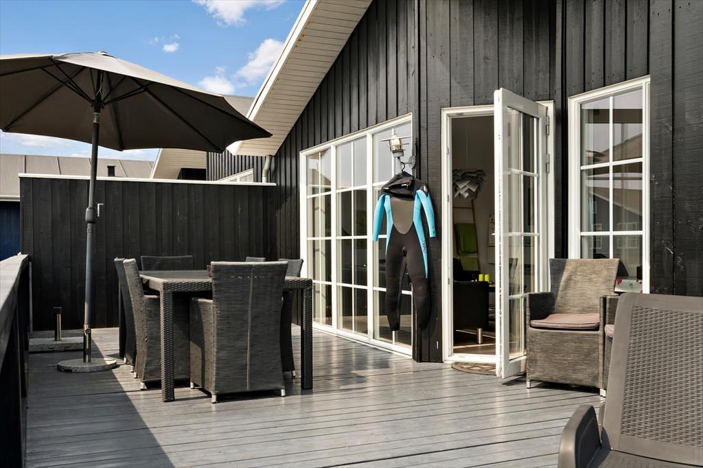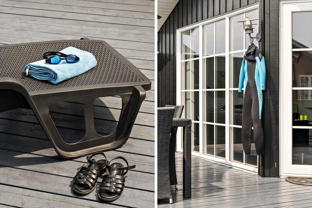 Når solen står højt over Nr. Lyngvig, er sommerhusets træterrasse den helt rette opholdsplads. Dagen kan starte på østsiden af huset, hvor I kan drikke morgenkaffe og nyde de rolige omgivelser – eventuelt mens børnene smutter over på det grønne fællesareal for at lege, spille bold eller gynge. I kan også slutte jer til dem for at spille petanque eller en rask fodboldkamp, før I vender tilbage til den sydvendte terrasse for at grille og slappe af i liggestolene.