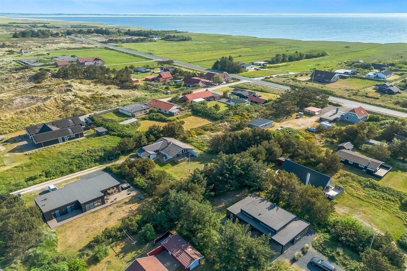 Ferieboligen er beliggende på en 1406 m² stor naturgrund. Der er 950 m til havet. Nærmeste forretning er beliggende i en afstand af 3000 m. Til ferieboligen hører 20 m² terrasseareal. Desuden er der 30 m² overdækket terrasse. Parkering ved ferieboligen.