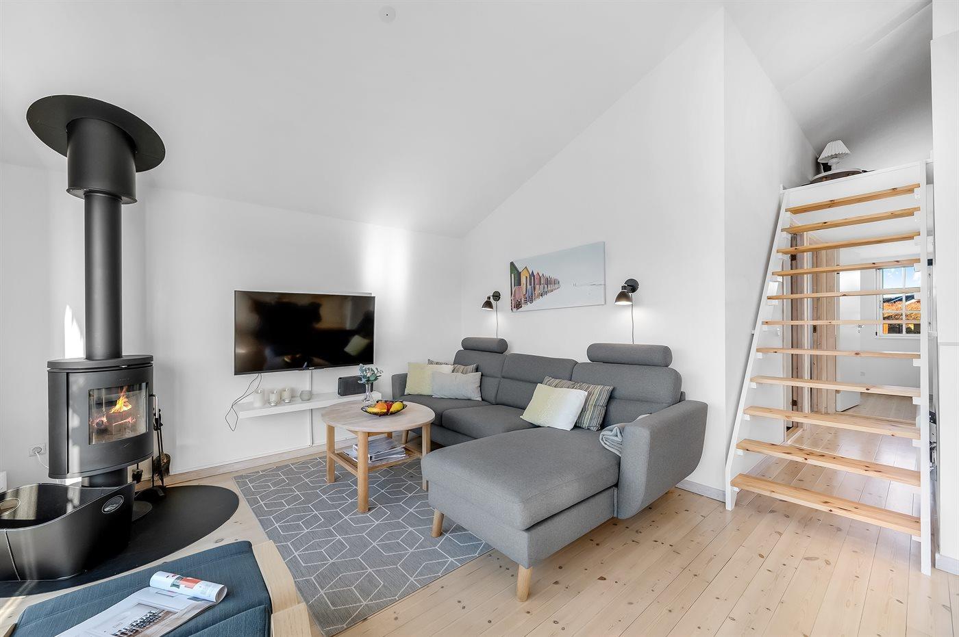 Ferieboligen er beliggende på en 715 m² stor naturgrund. Der er 1600 m til havet. Der er 300 m til fjorden. Nærmeste forretning er beliggende i en afstand af 4300 m. Der er en golfbane i en afstand af 8000 m. Til ferieboligen hører åbent terrasseareal. Parkering ved ferieboligen.
