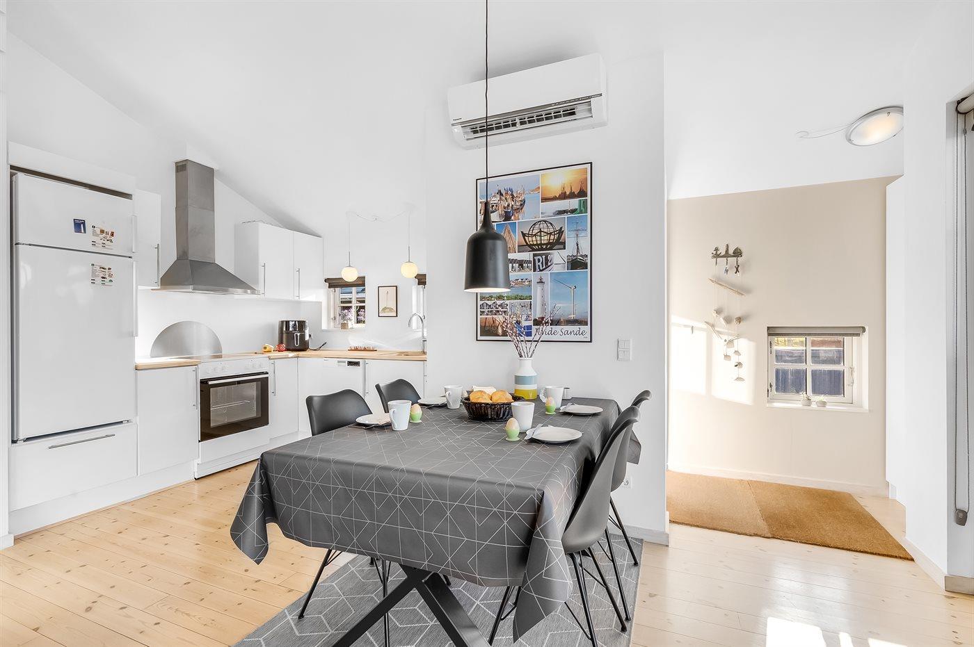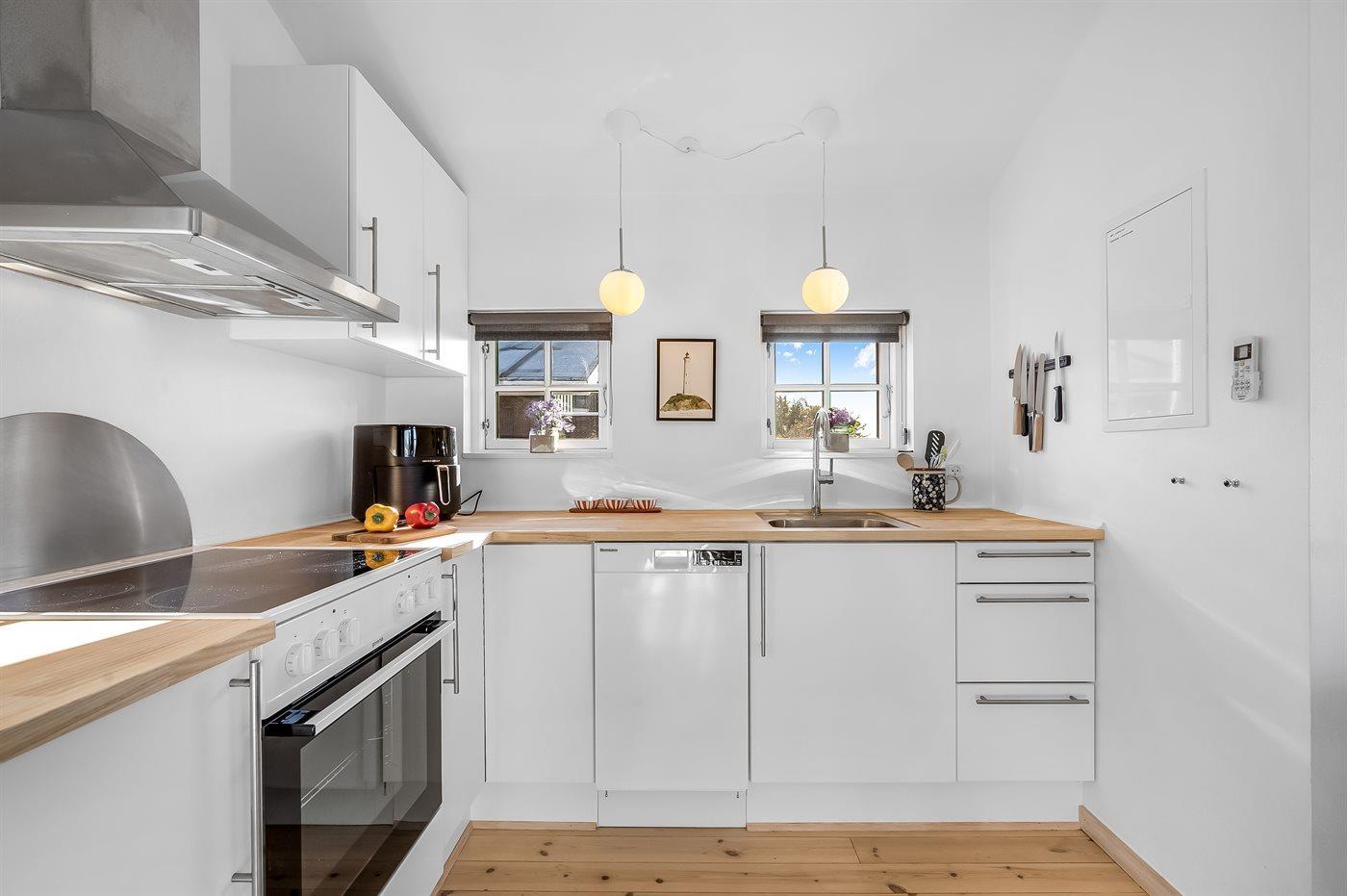 Køkkenet er udstyret med 1 køleskab. Der er 4 keramiske kogeplader, varmluftovn, mikrobølgeovn samt opvaskemaskine.