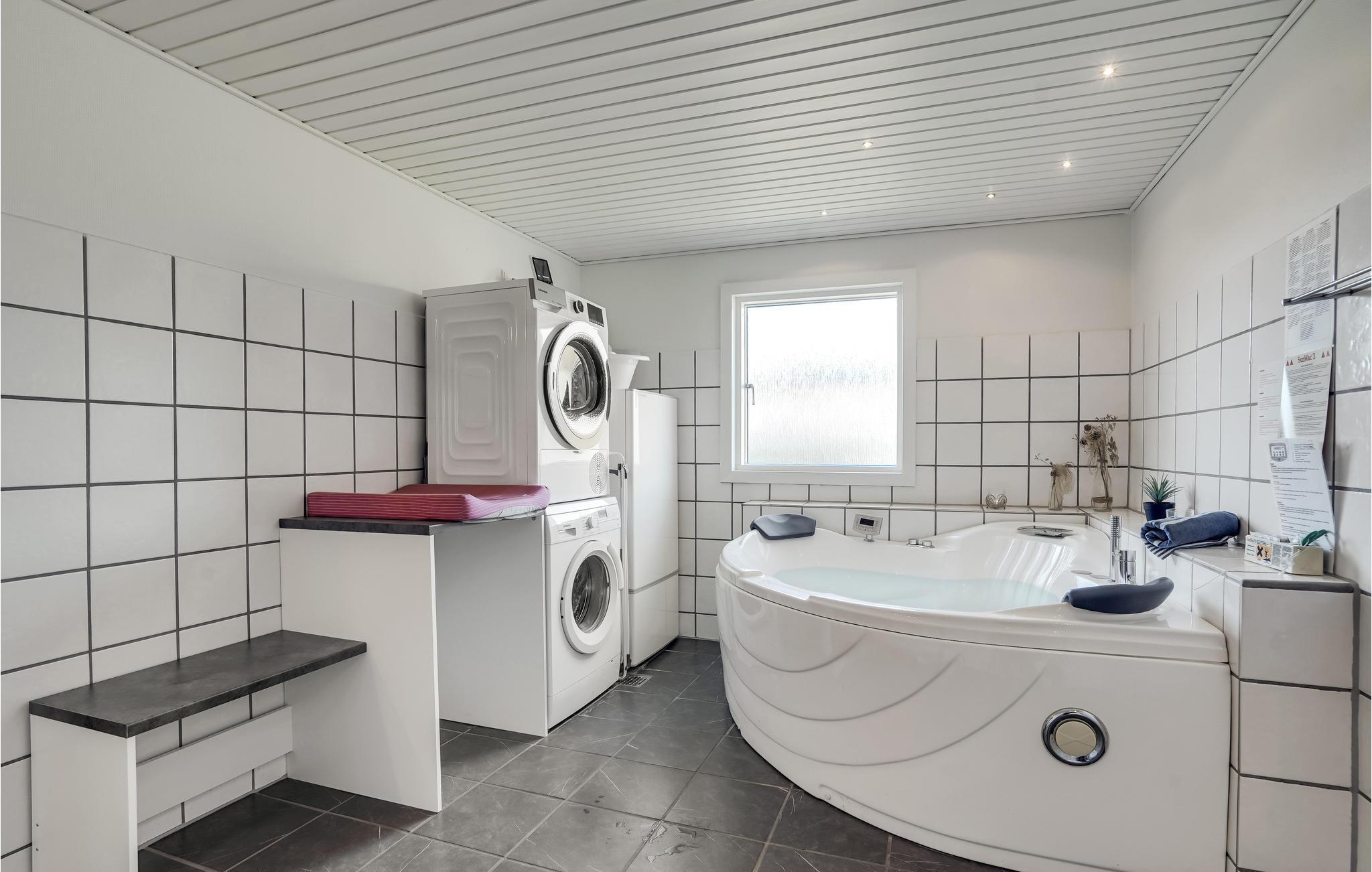 Huset er indrettet med fire soveværelser, hvoraf det ene har adgang til eget toilet. Hertil kommer et køkken/stueområde med smuk udsigt til Lyngvig Fyr, dejligt badeværelse med både brus og spabad, samt en stor ekstra stue. Der er desuden installeret fibernet, så I kan snildt medbringe den bærbare på ferien.