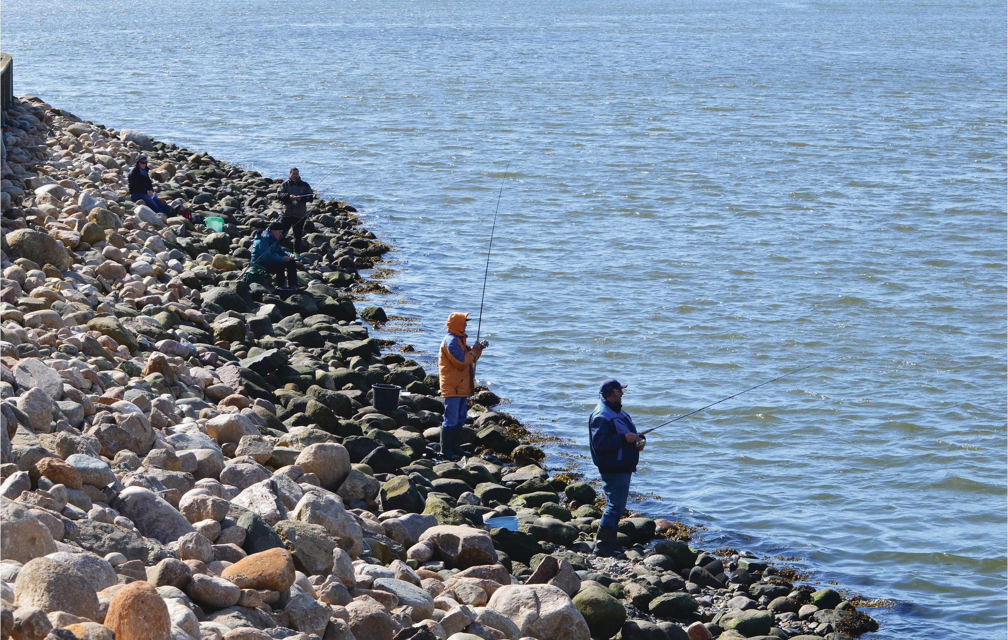 Hvide Sande er en rigtig fiskerby. Nyd det autentiske miljø på havnen, fisk fra molen eller køb friske fisk i en af fiskebutikkerne, så I har til grillen om aftenen. Gå evt. en tur ud på tangen, som går ca. 800 m ud i havet, nyd et dejligt måltid på en af restauranterne eller tag en tur i svømmehallen.
