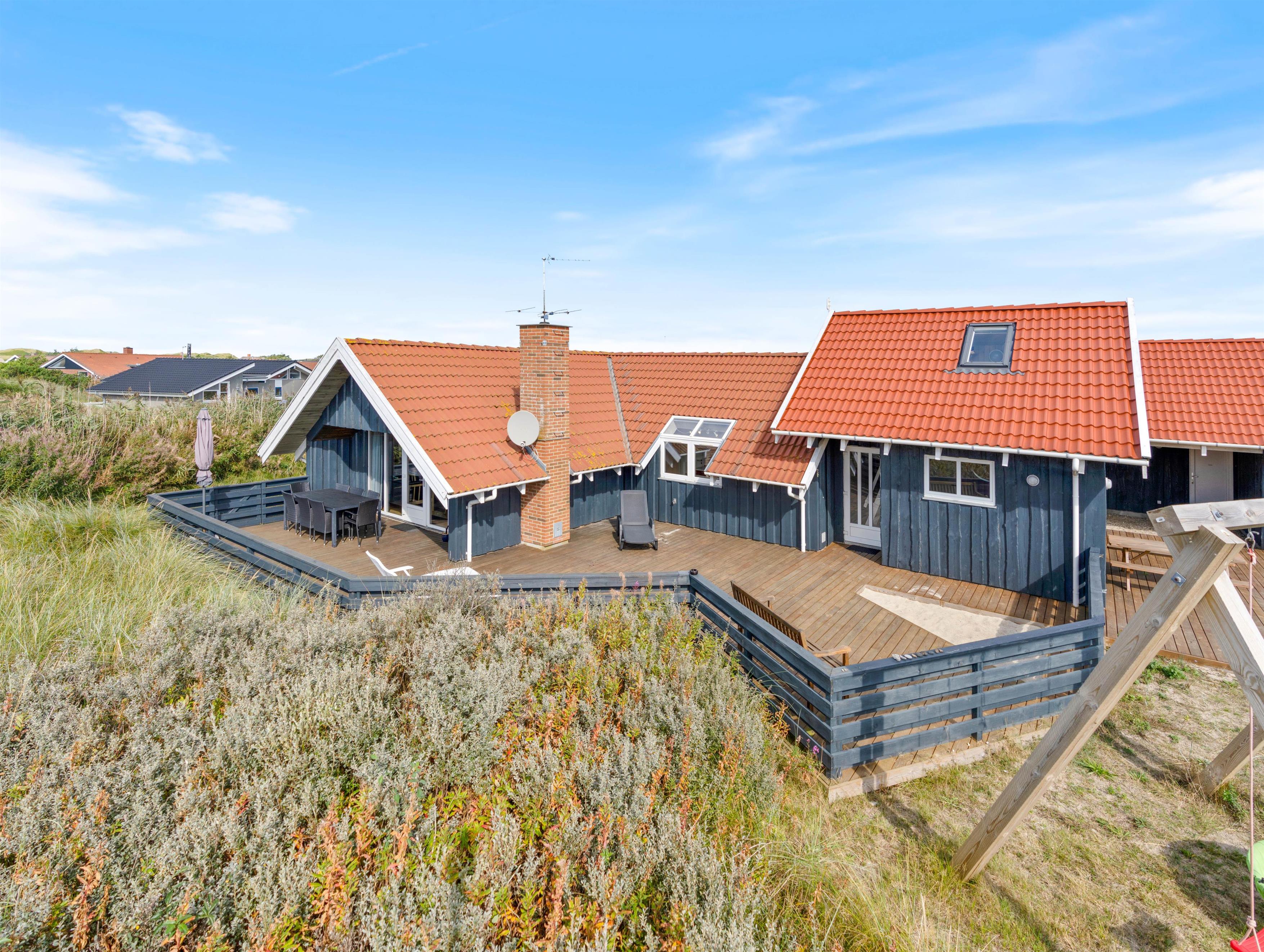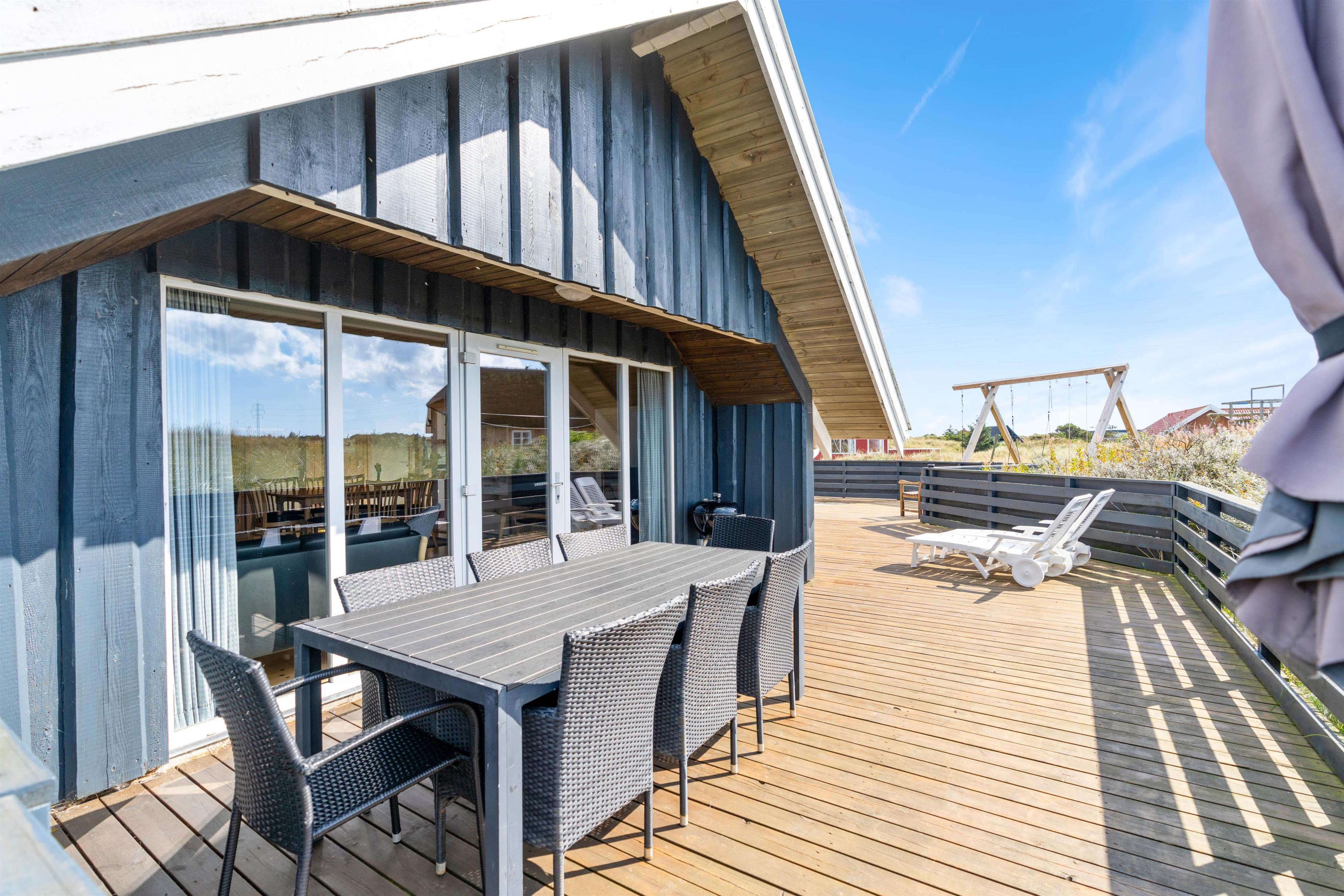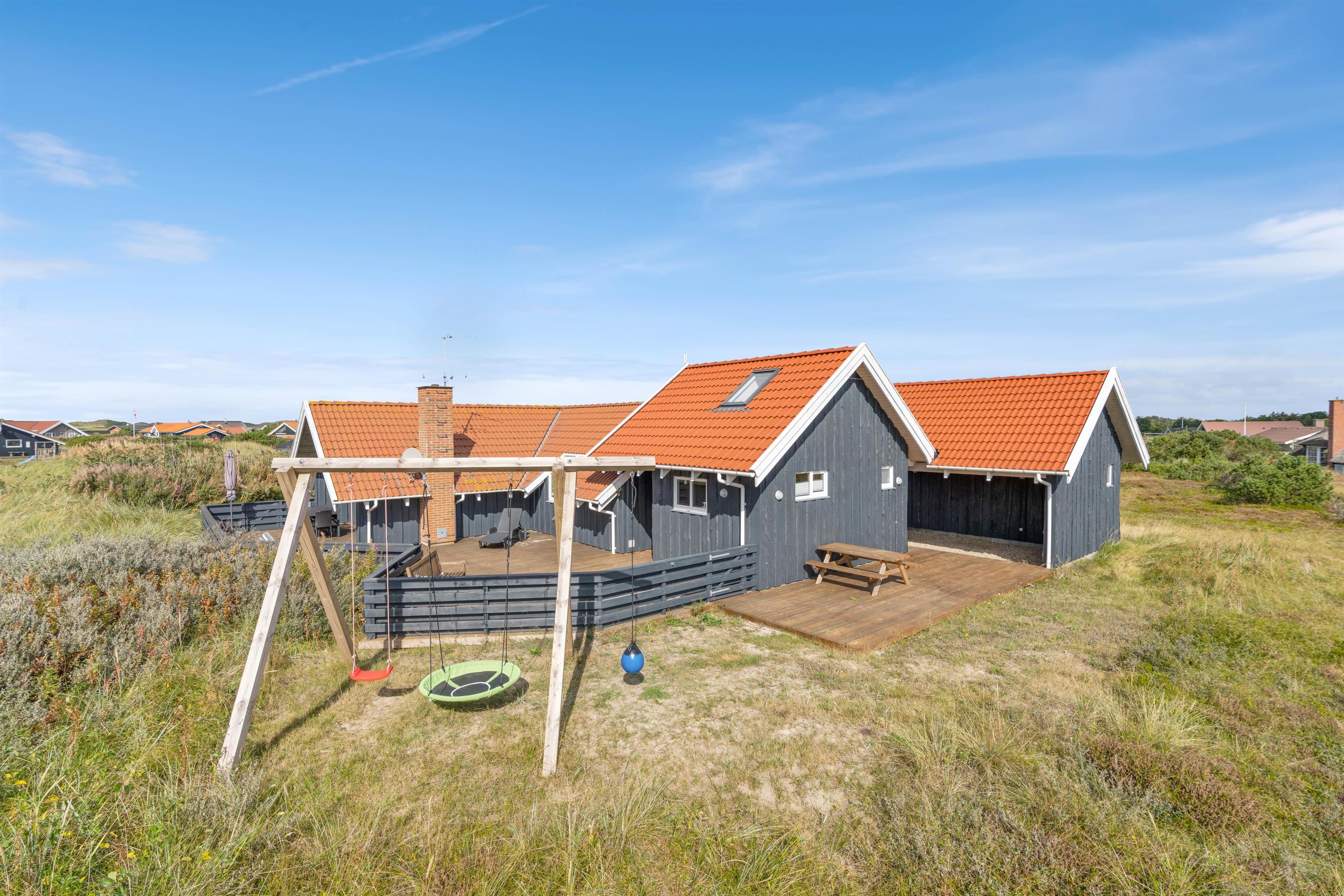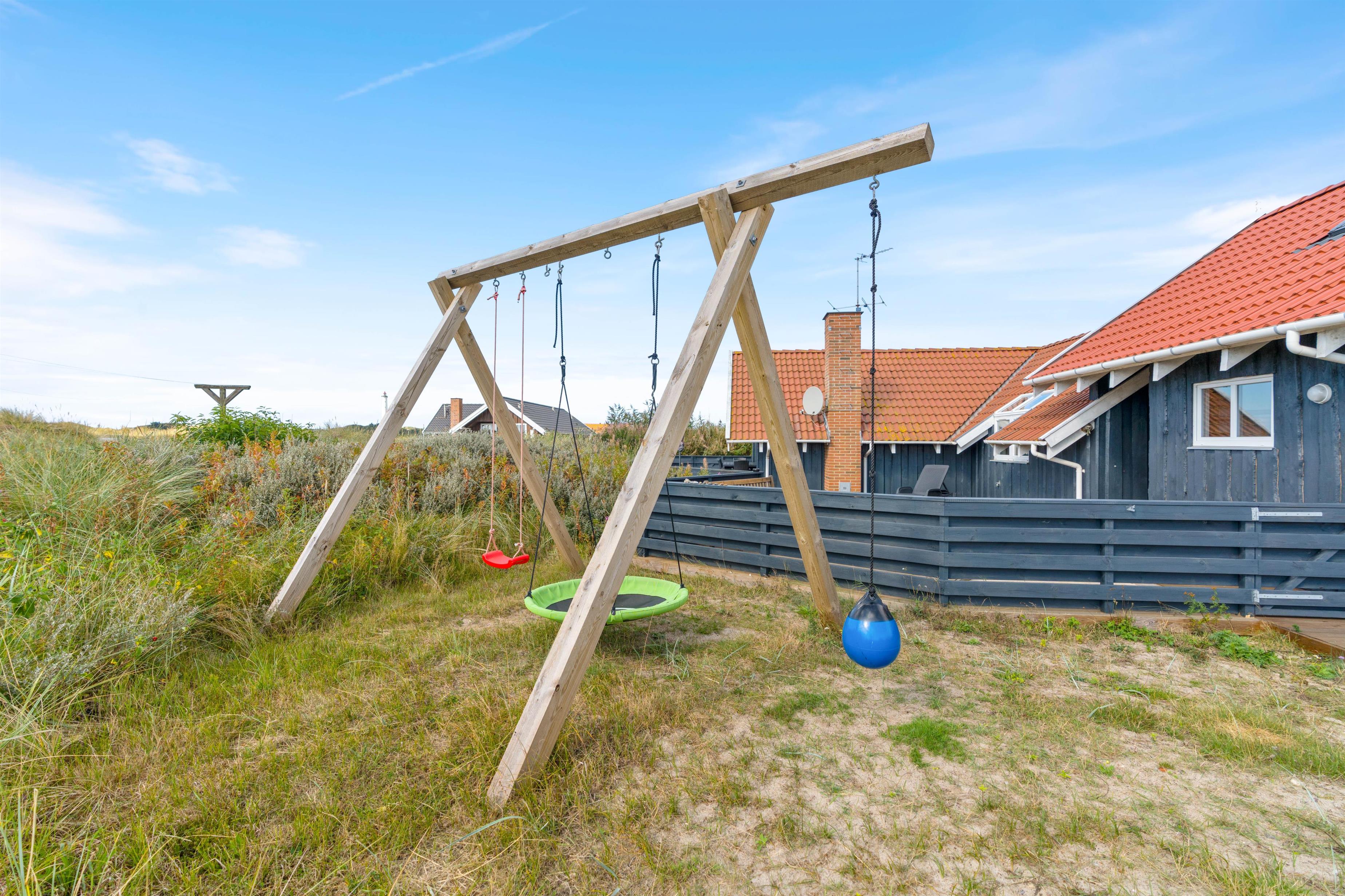 Dette sommerhus er både børnevenligt, hundevenligt og bilvenligt. Sommerhuset har nemlig en stor og lukket terrasse, som giver både børn og kæledyr mulighed for at rende frit rundt uden noget særligt opsyn. Her er der også sandkasse og gyngestativ til at holde børnene beskæftiget.