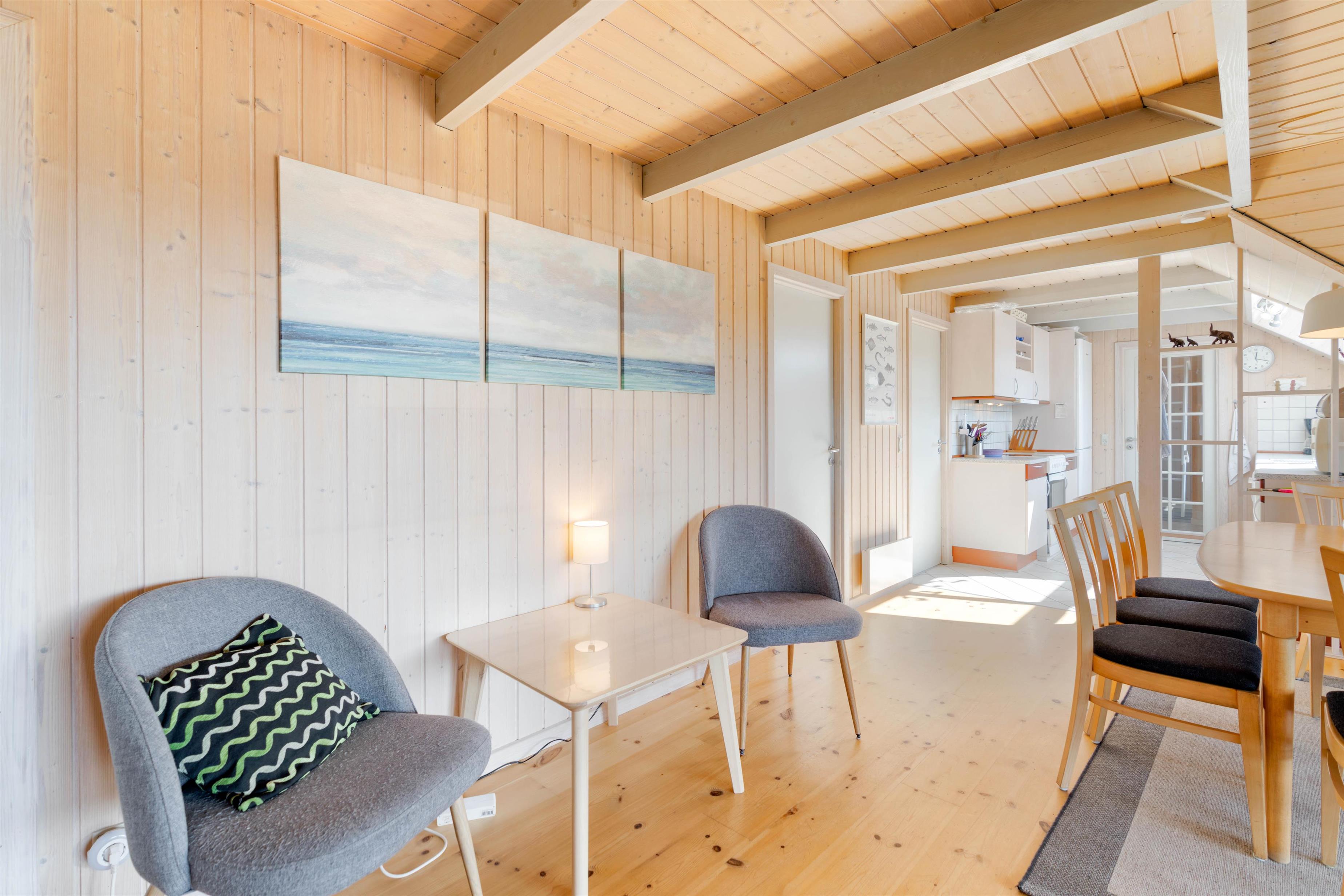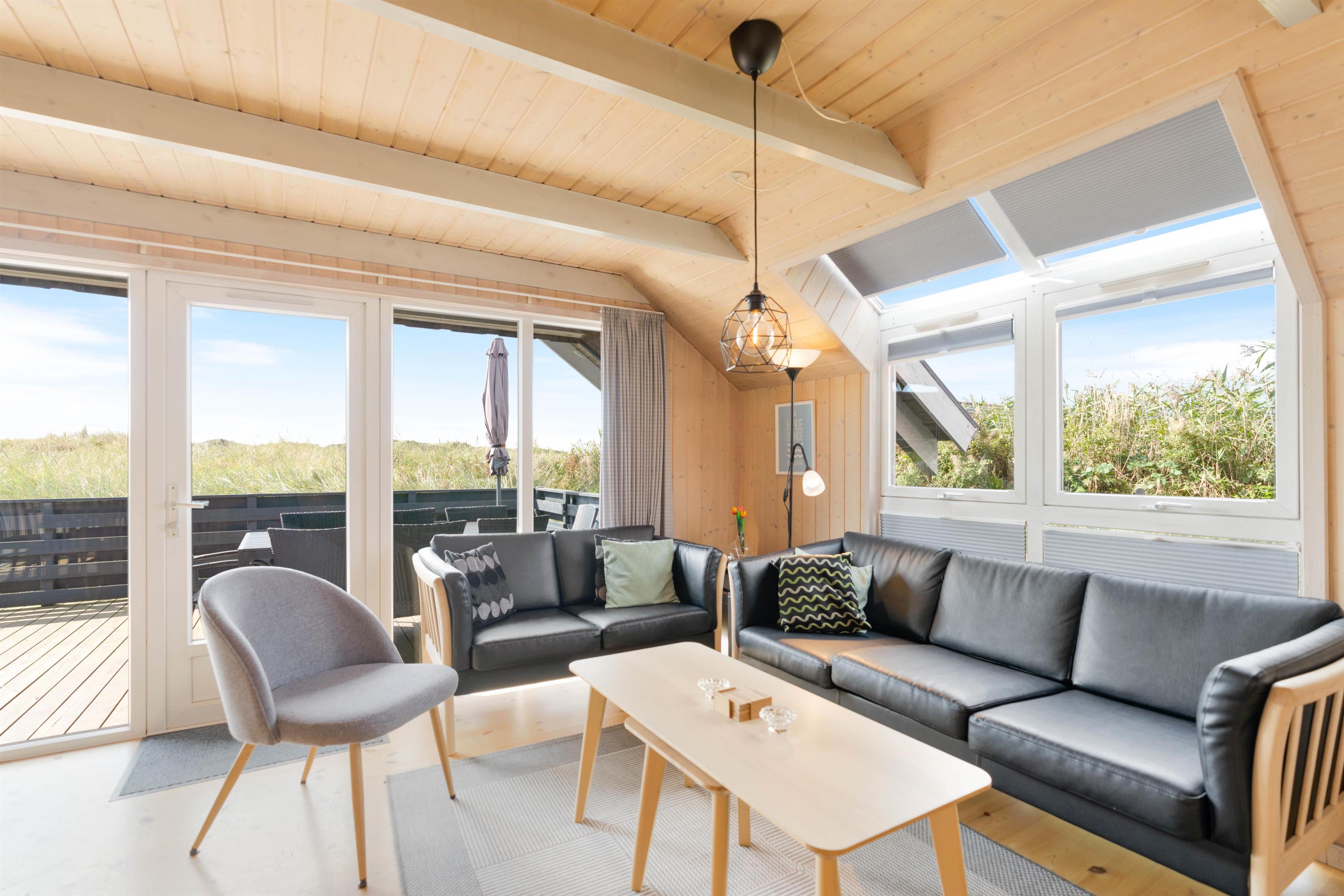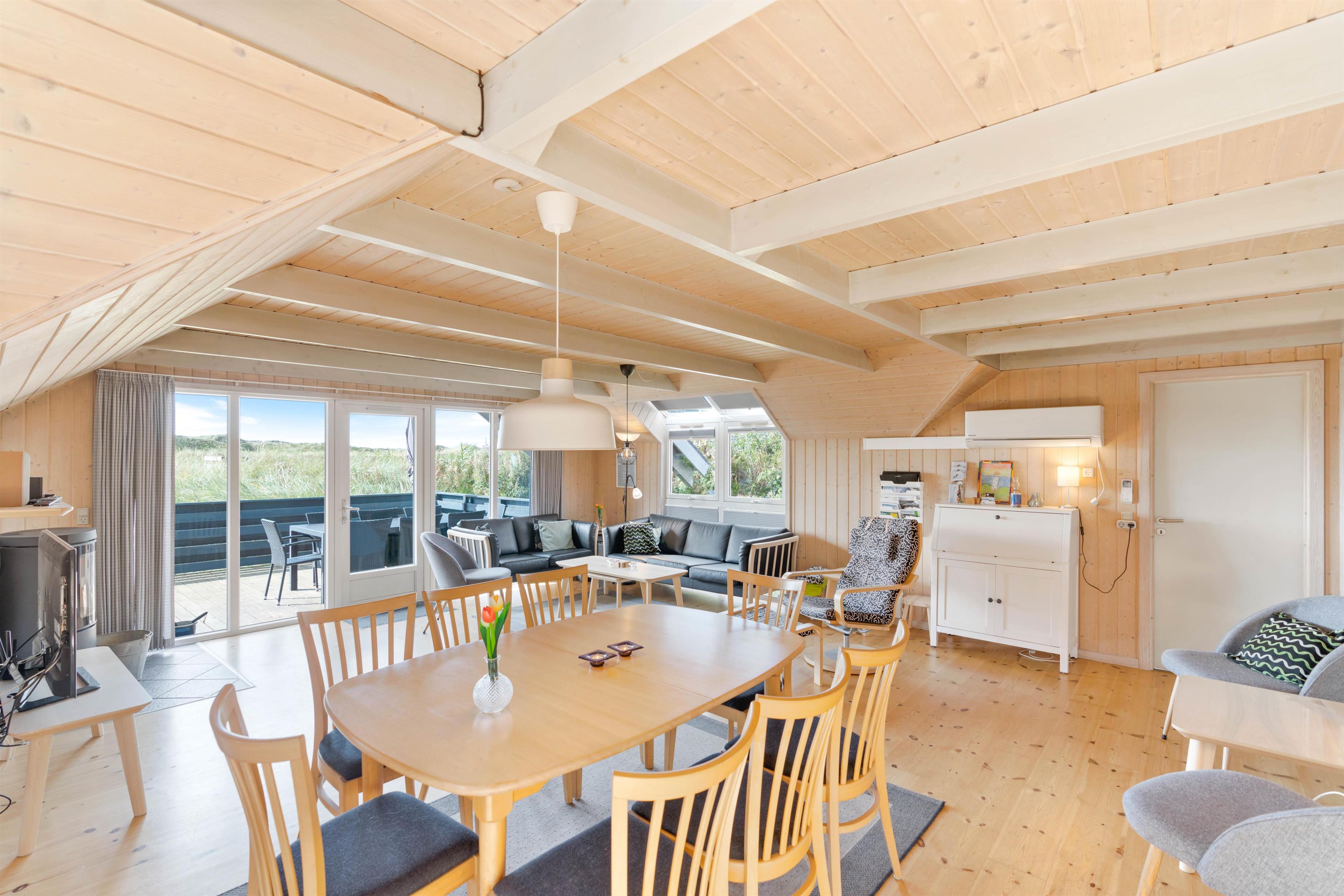 Huset har mange af de moderne faciliteter der bliver efterspurgt, kombineret med en fred og ro der tilbydes i dette område, som kan være medvirkende til en skøn ferie ved Vestkysten. I sommerhuset er køkkenalrummet husets hjerte, her vil størstedelen af jeres hygge stunder formegentlig foregå. Her kan I nyder varmen fra brændeovnen. I det funktionelle køkken er der alle de nødvendige redskaber for at lave en lækkert måltid, mens man nyder den skønne udsigt.