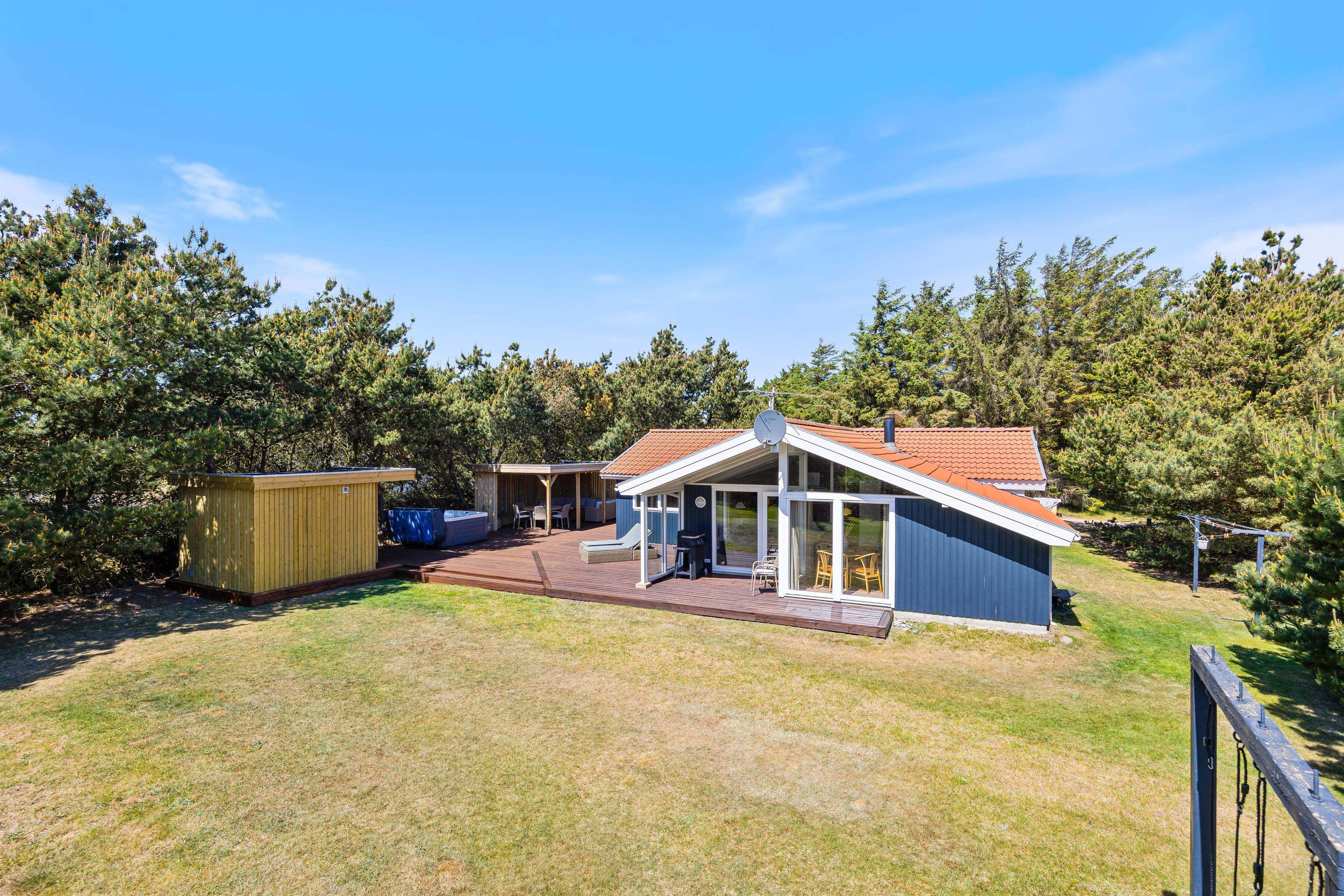 På Fyrmarken 26 I Nr. Lyngvig finder I dette velindrettet sommerhus, som byder på en hyggelig atmosfære. Her vil I blive budt velkommen i et stilrent sommerhus, hvor der er kælet for detaljerne. Det familievenlige sommerhus er renoveret i 2026 og er beliggende på en plænegrund med plads til leg. Udenfor venter jer det hyggeligste uderum med et unikt overdækket loungeområde med ildbord og lyskæder. Derudover finder I også en spa og sauna på terrassen, hvorfra I kan sidde og nyde udsigten til Nr. Lyngvig Fyr.