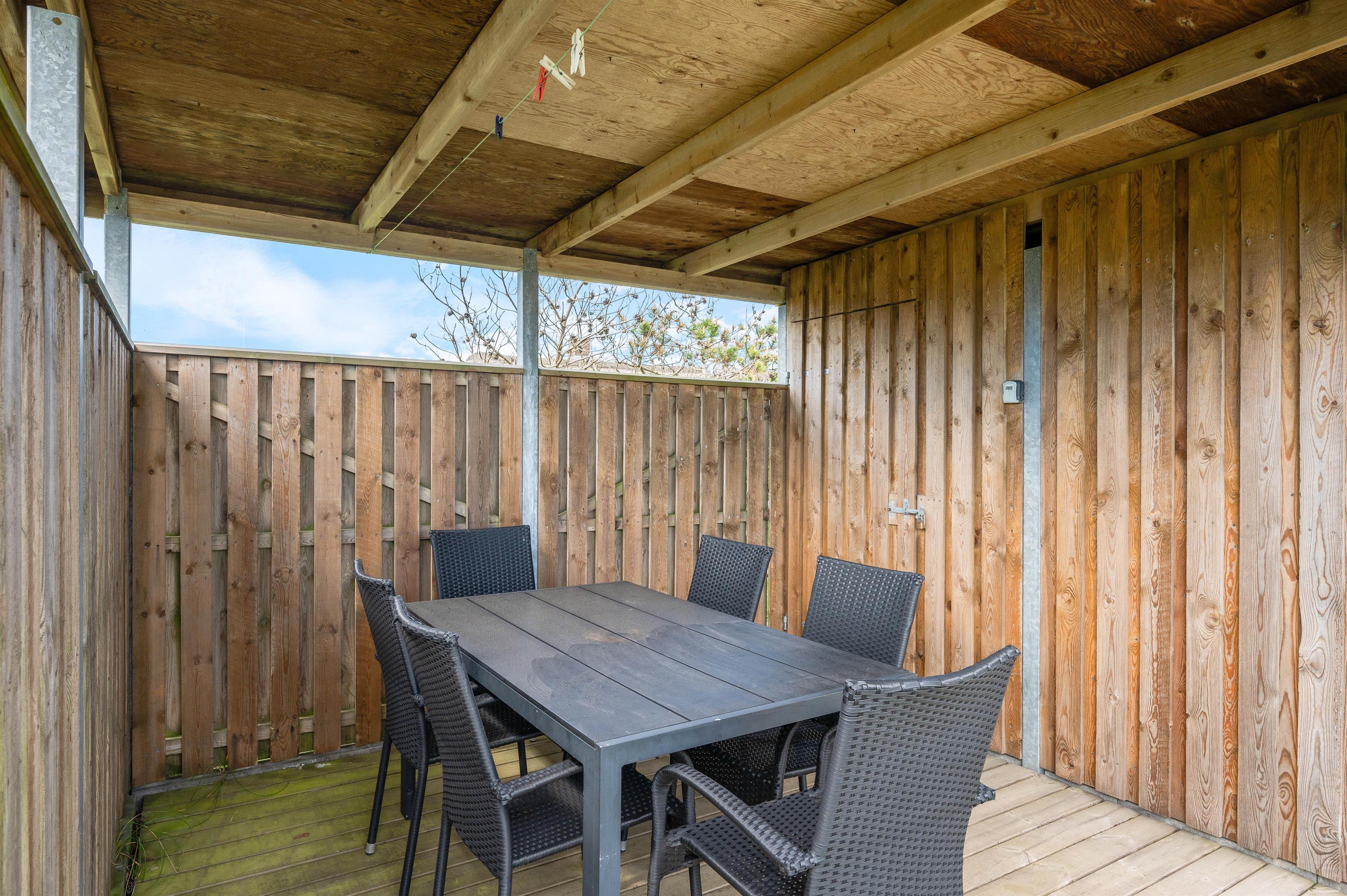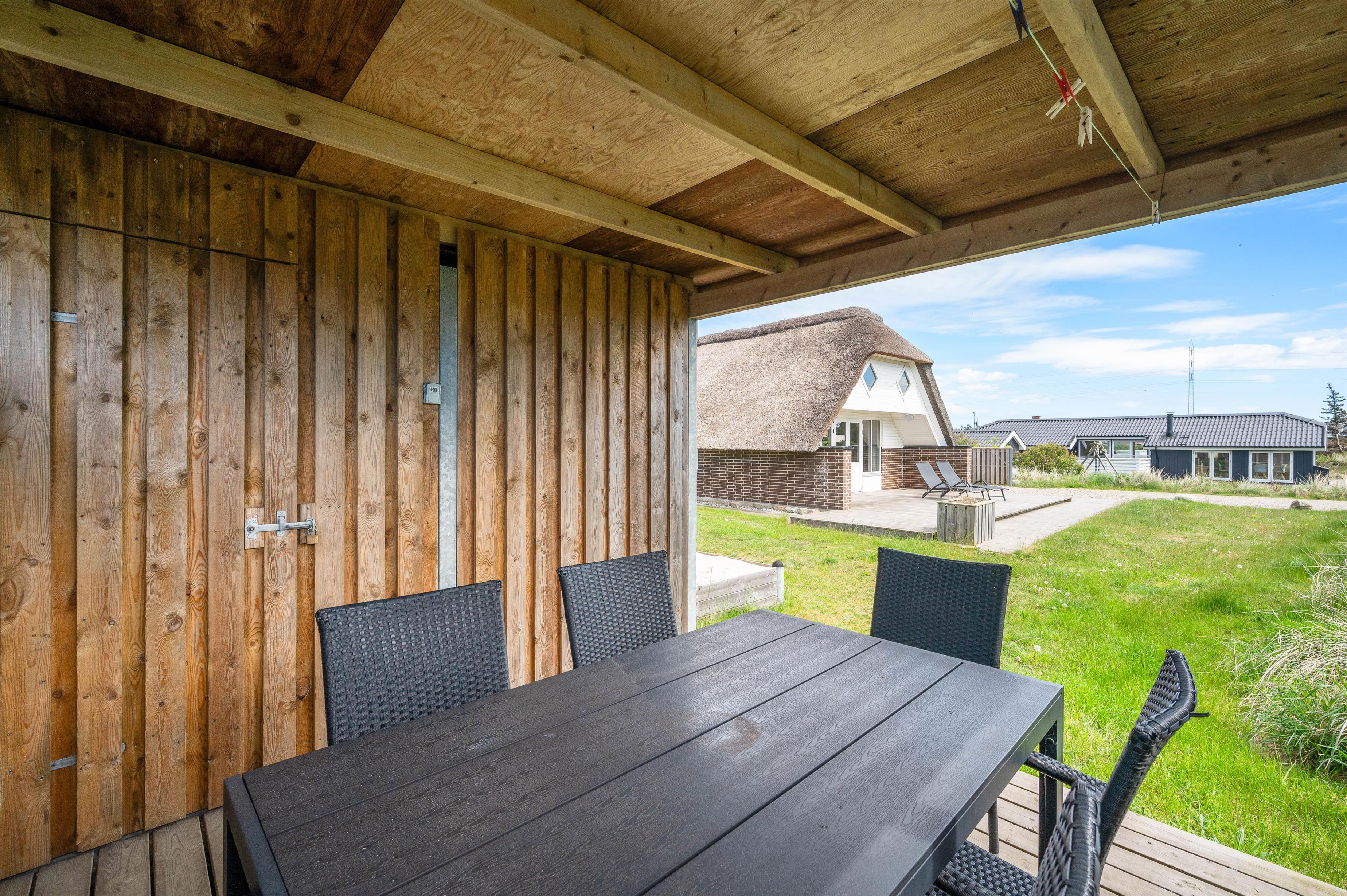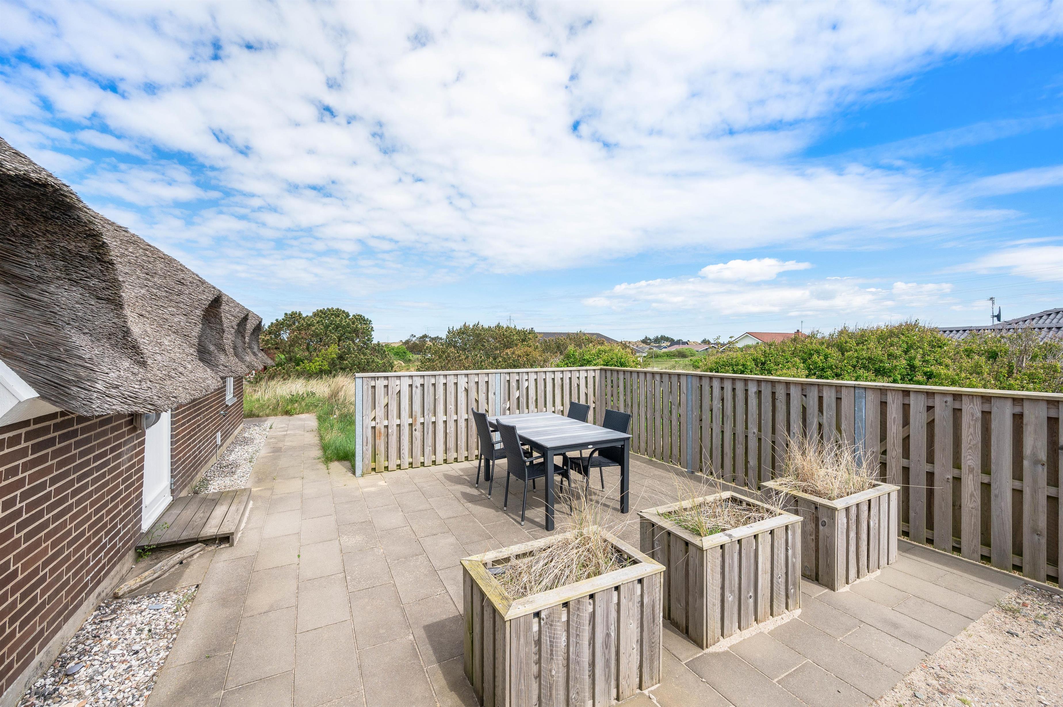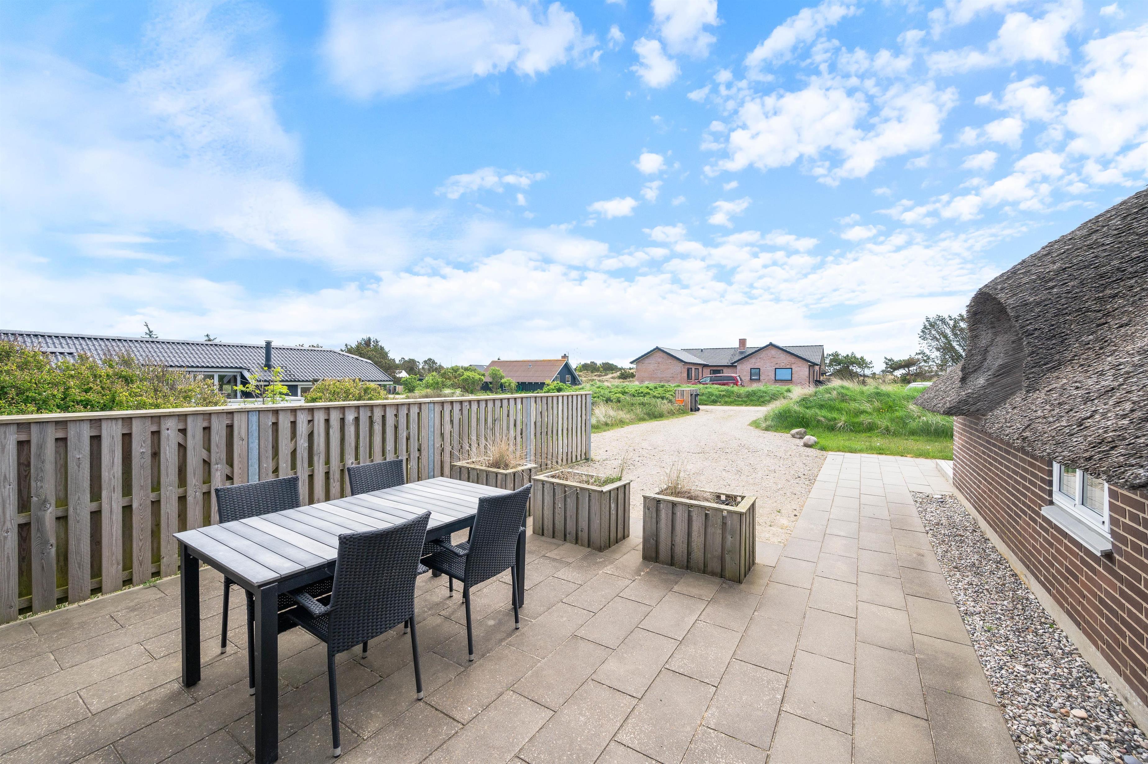 På sommerhusets vestside er der en flisebelagt terrasse, der er det perfekte sted at samles og slutte enhver god feriedag. Sæt jer til rette omkring havebordet og nyd et lækker måltid fra grillen, I har til rådighed, mens solen begynder at gå ned.