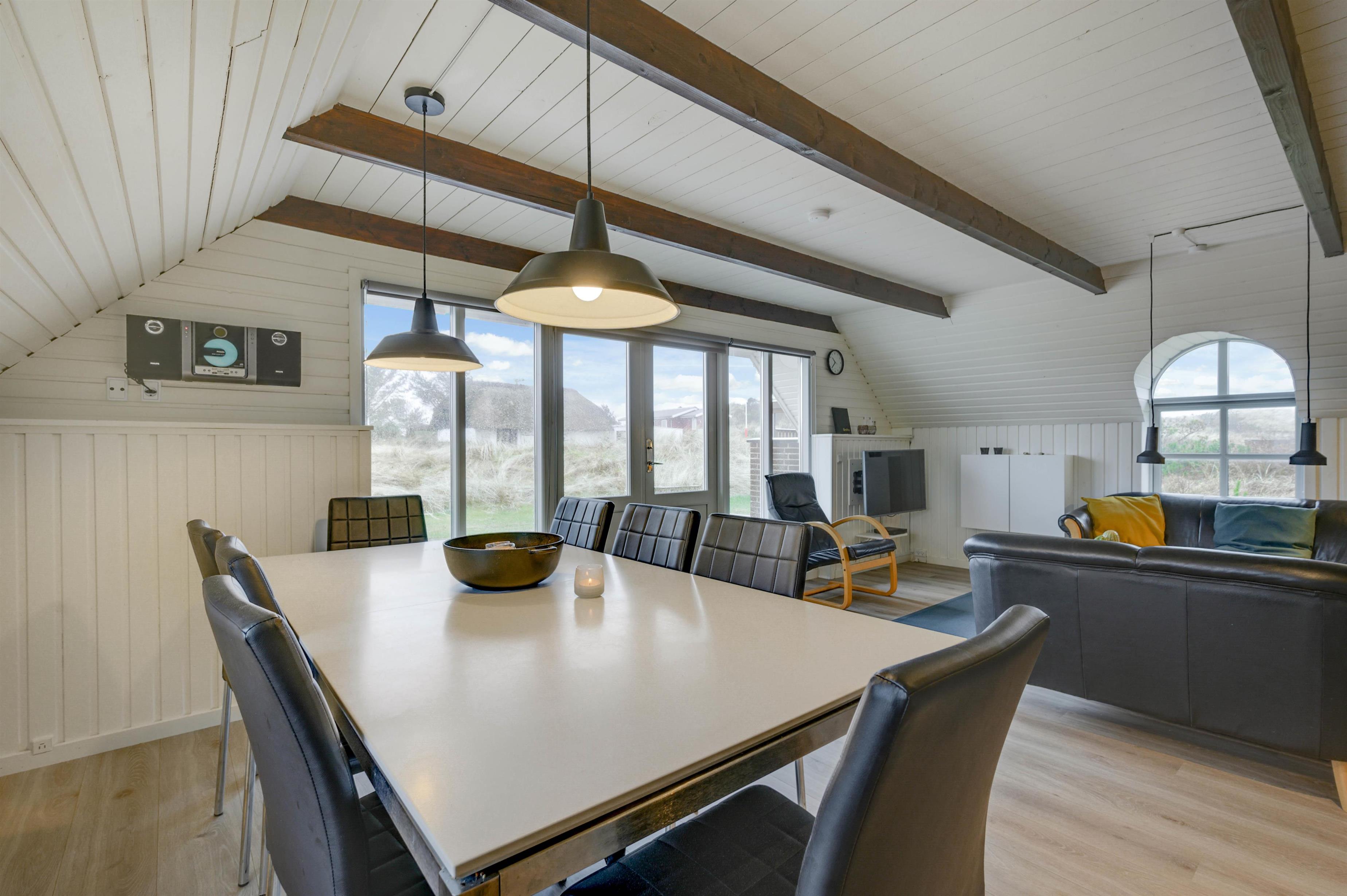 Hjertet og samlingsstedet i sommerhuset er alrummet, hvor køkken og stue er forenet. I den hyggelige og moderne indretning er der lagt op til mange dejlige feriestunder for hele familien eller parret. Køkkenet er velindrettet med god plads til at kokkerere mange lækre sager, og opvaskemaskinen tager opvasken for jer.
