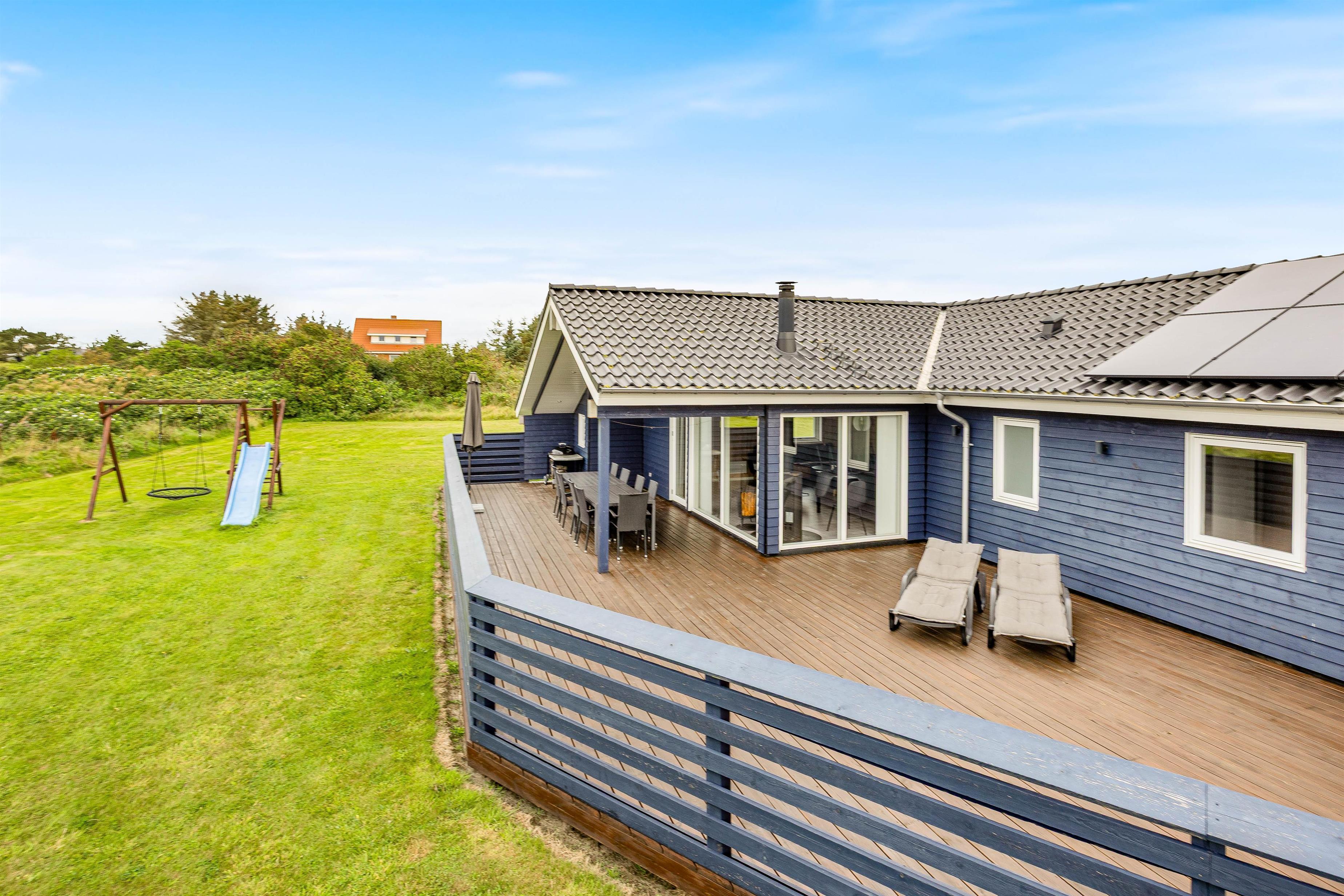 Det 145 kvadratmeter store feriehus er først bygget i 2018 og er opført i flotte, kvalitetsbevidste materialer. Indretningen er stilfuld og moderne med lækre faciliteter, som gør ferien ekstra god.