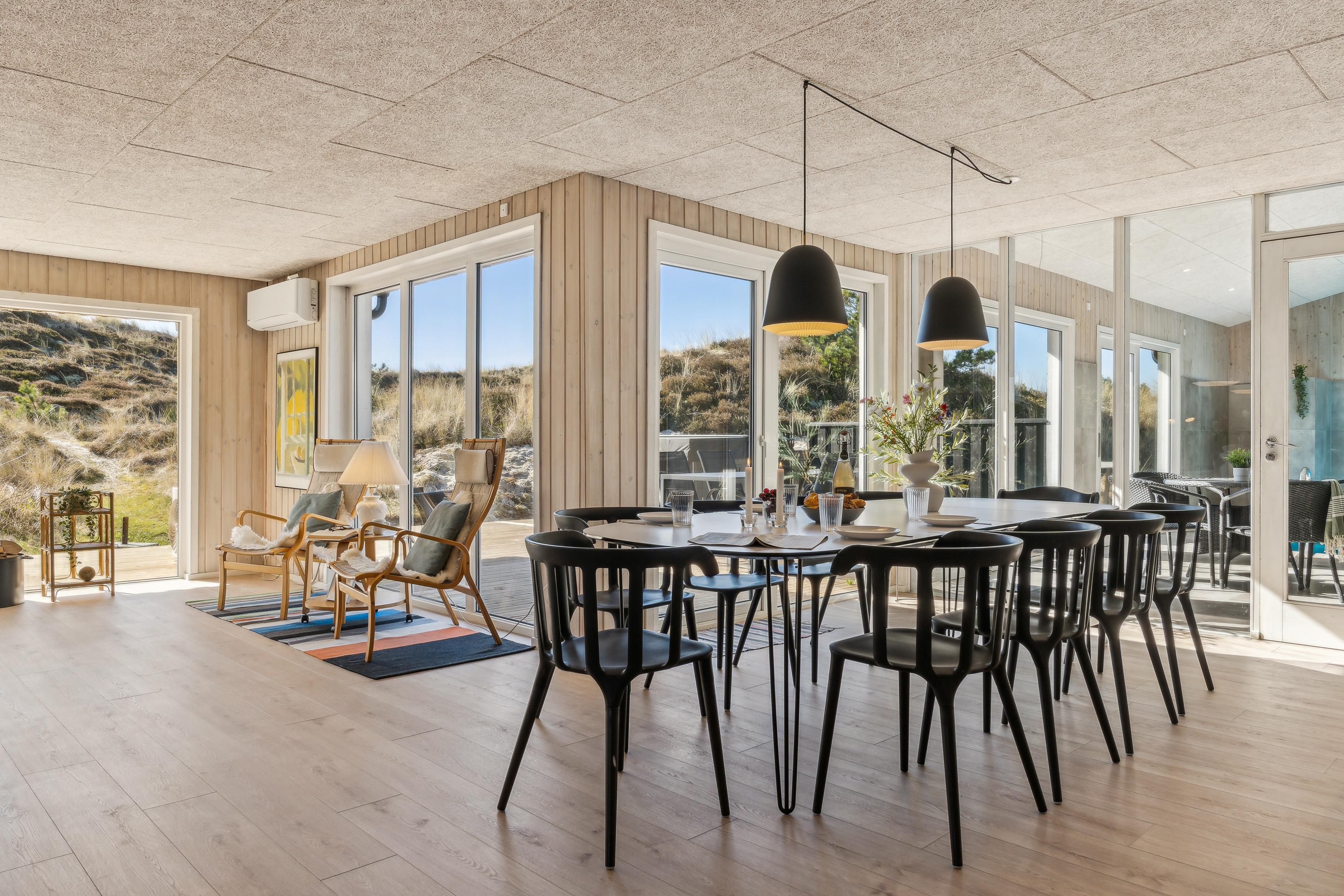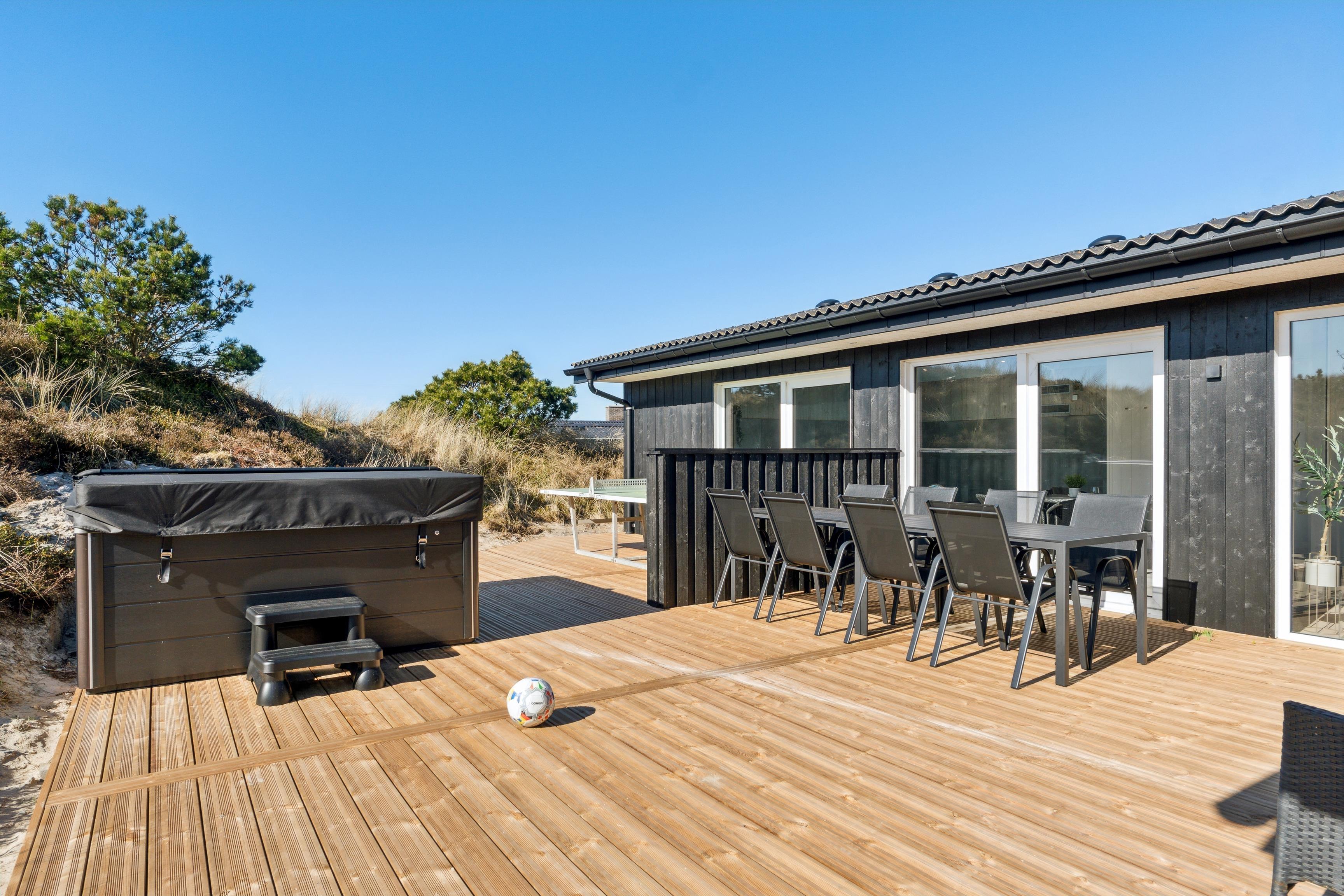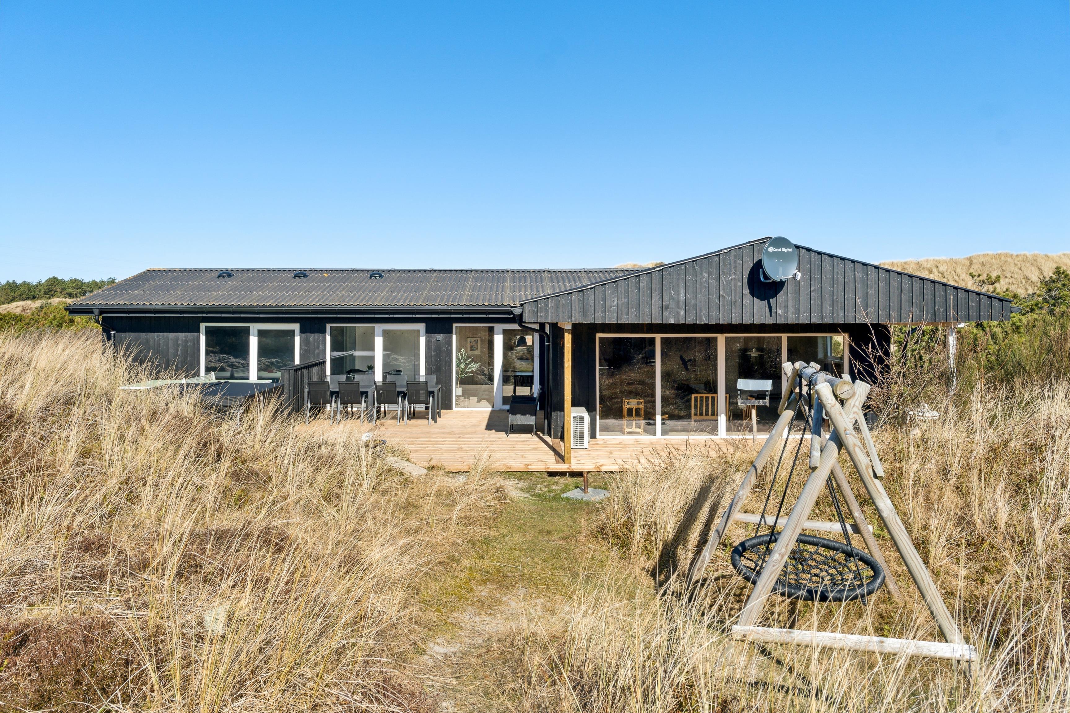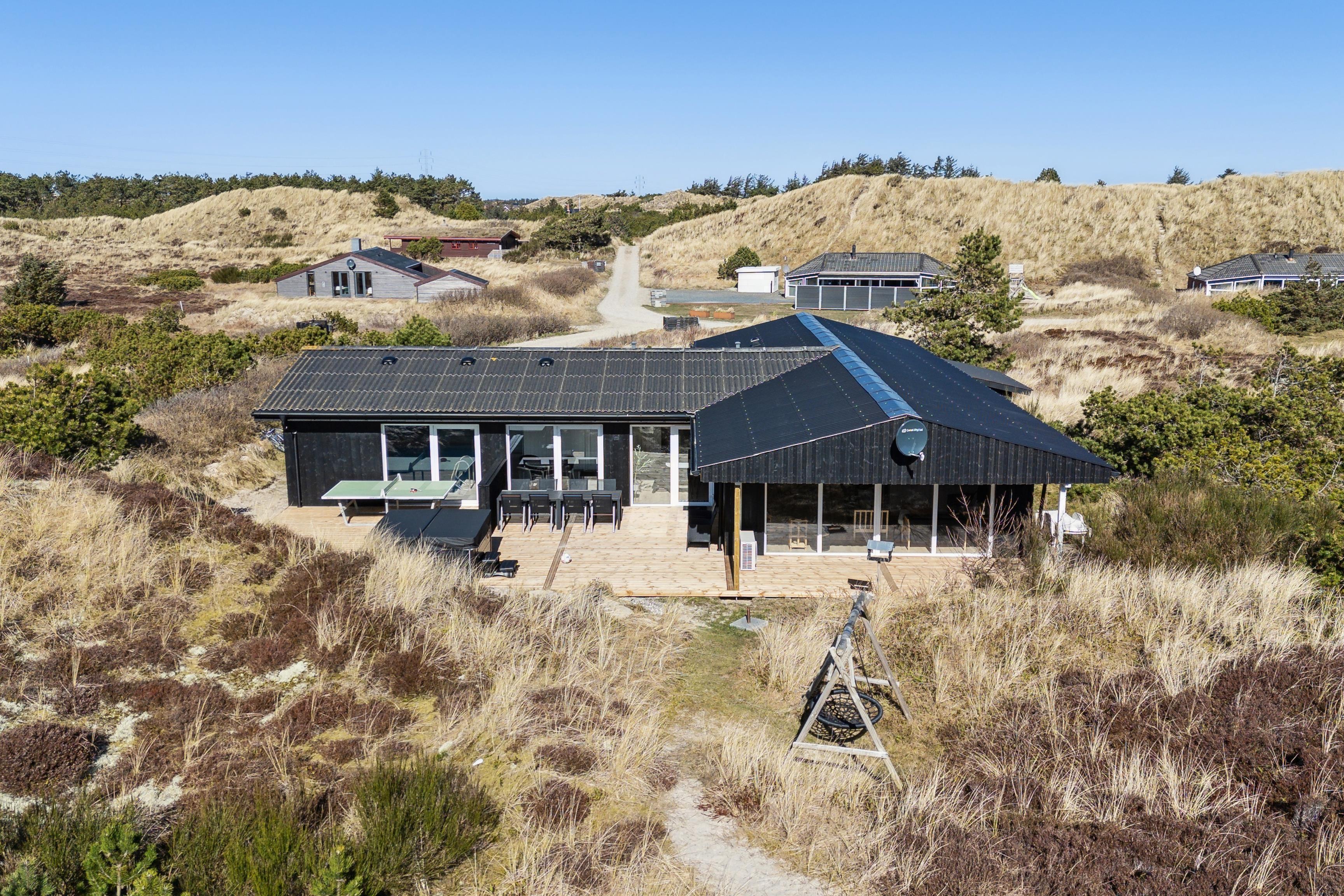 Fantastisk nyrenoveret sommerhus. Efter en omfattende opdatering i 2025 fremstår huset nu som et moderne og luksuriøst ferieparadis med nyt stort udendørs spabad, opdateret poolområde og skønne terrasser. Huset ligger på en 3.000 m² kuperet klitgrund, hvor du kan nyde en helt ugeneret beliggenhed tæt på den storslåede natur. Fra terrasserne har du en flot udsigt til Nr. Lyngvig Fyr, og der er rig mulighed for sjov og afslapning med bordfodbold, udendørs bordtennis og gratis trådløst internet.