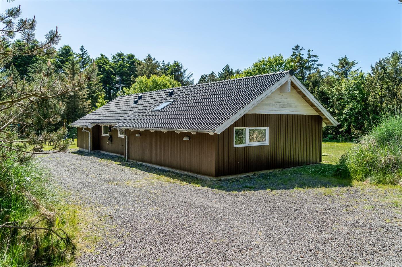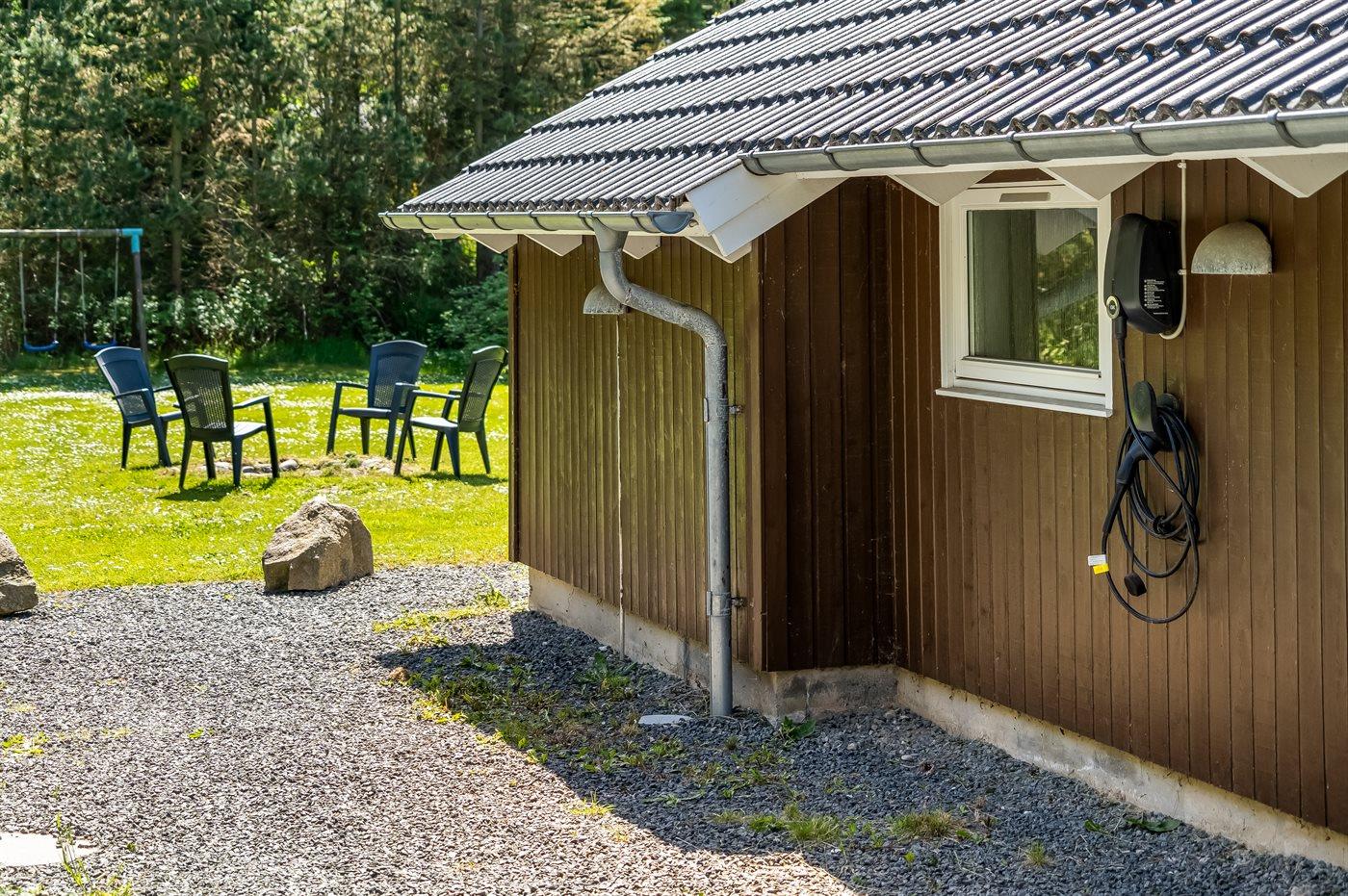 Ferieboligen er beliggende på en 2008 m² stor naturgrund. Der er 600 m til havet. Nærmeste forretning er beliggende i en afstand af 3350 m. Til ferieboligen hører 40 m² terrasseareal. Desuden er der 7 m² overdækket terrasse. Gynge. Legetårn. Fodboldmål. Bålsted. Der er installeret stik til opladning af elbil. Type 2 stik. Med 11 kW ladeeffekt. 4 parkeringspladser findes ved huset.