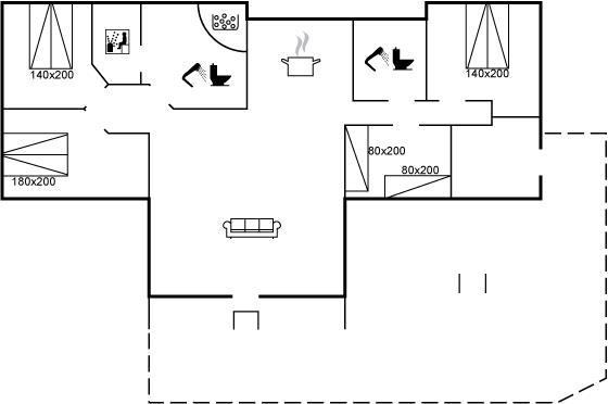 Der er i alt 4 soveværelser. Sovepladserne fordeler sig på: 6 sovepladser i dobbeltsenge. 2 sovepladser i enkeltsenge. Derudover er der 1 stk. barneseng. Der er mørklægningsgardiner i alle soveværelser.