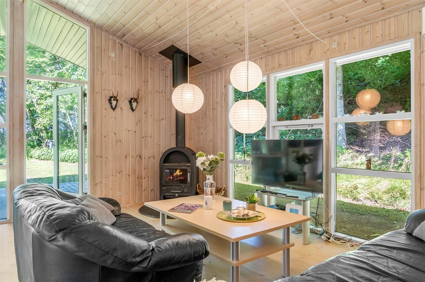 På en rolig og uforstyrret beliggende grund finder du dette skønne sommerhus, som med fordel vil kunne danne rammen om din næste ferie. Her taler vi ægte sommerhusstemning og huset er omgivet af skønne terrasser, hvor man kan sidde og nyde dyrelivet eller blot stilheden, alt imens man nyder en kop kaffe og slapper af. På kølige dage kan man sætte sig ind foran brændeovnen med en god bog.