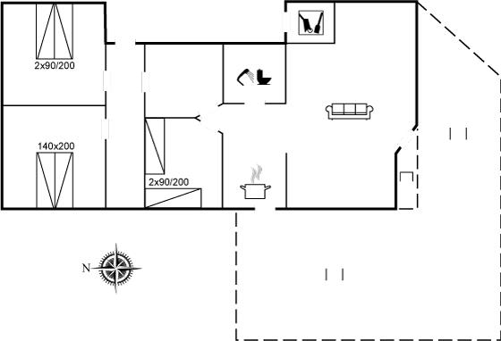 Der er i alt 3 soveværelser. Sovepladserne fordeler sig på: 4 sovepladser i dobbeltsenge. 2 sovepladser i enkeltsenge.