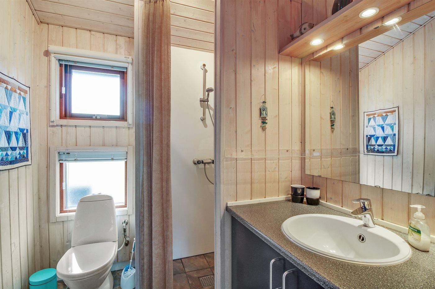 Der er 1 badeværelse med bruseniche og 1 toilet.. Der er gulvvarme på 1 badeværelse.