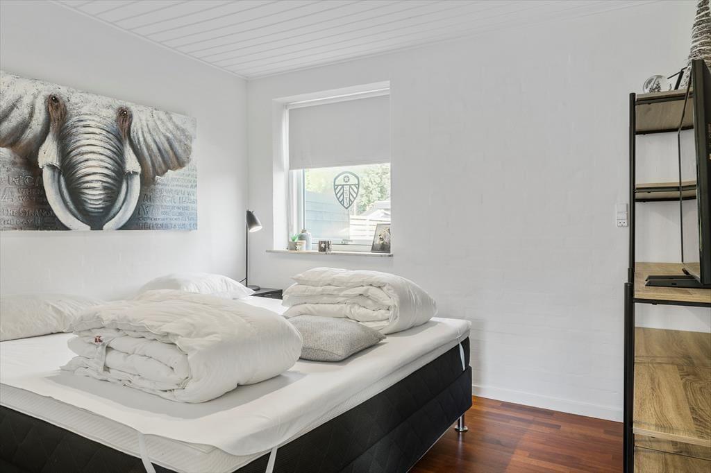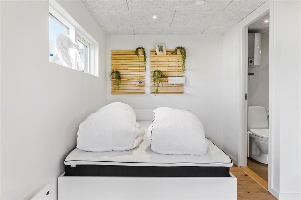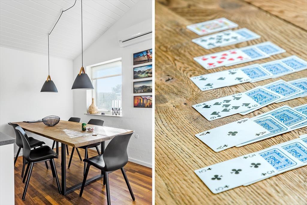 Sommerhuset er et af den slags, der indbyder til hygge og afslapning, så snart man træder ind ad hoveddøren. Stuens sofa er stor, så der er god plads til at flade ud med bøger, strikketøj eller tv-serier, og når I har lavet mad i det åbne køkken, er det skønt at slå sig ned ved spisebordet for at forsætte hyggesnakken, mens I deler et lækkert måltid. Når det er sengetid, kan I fordele jer på de to soveværelser og i annekset, der er indrettet med en ekstra dobbeltseng. Som en rar detalje er der badeværelse i begge bygninger – og badeværelset i hovedhuset er for øvrigt udstyret med både vaskemaskine og tørretumbler.