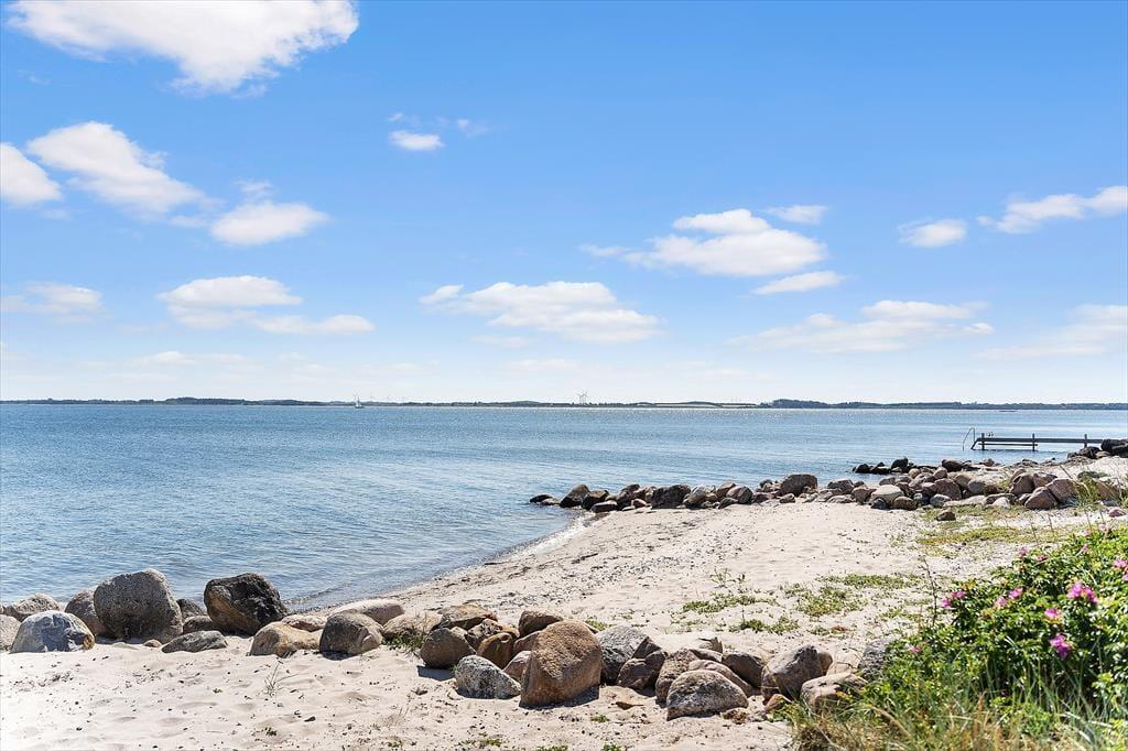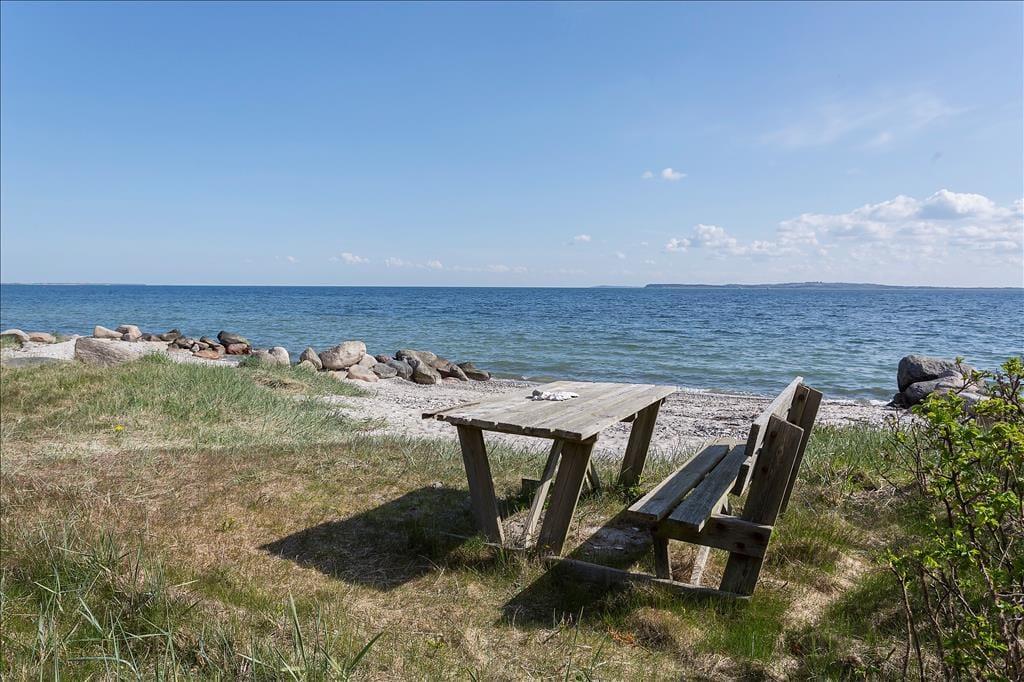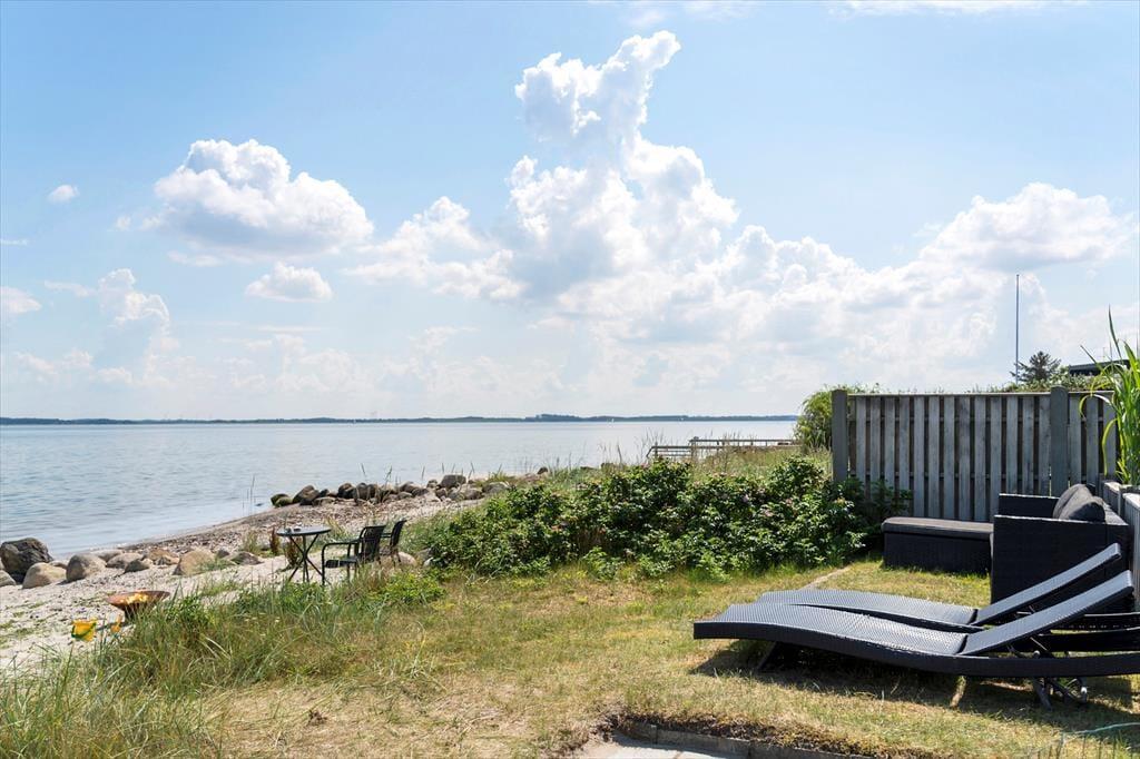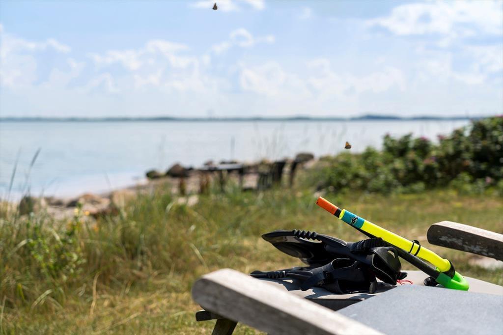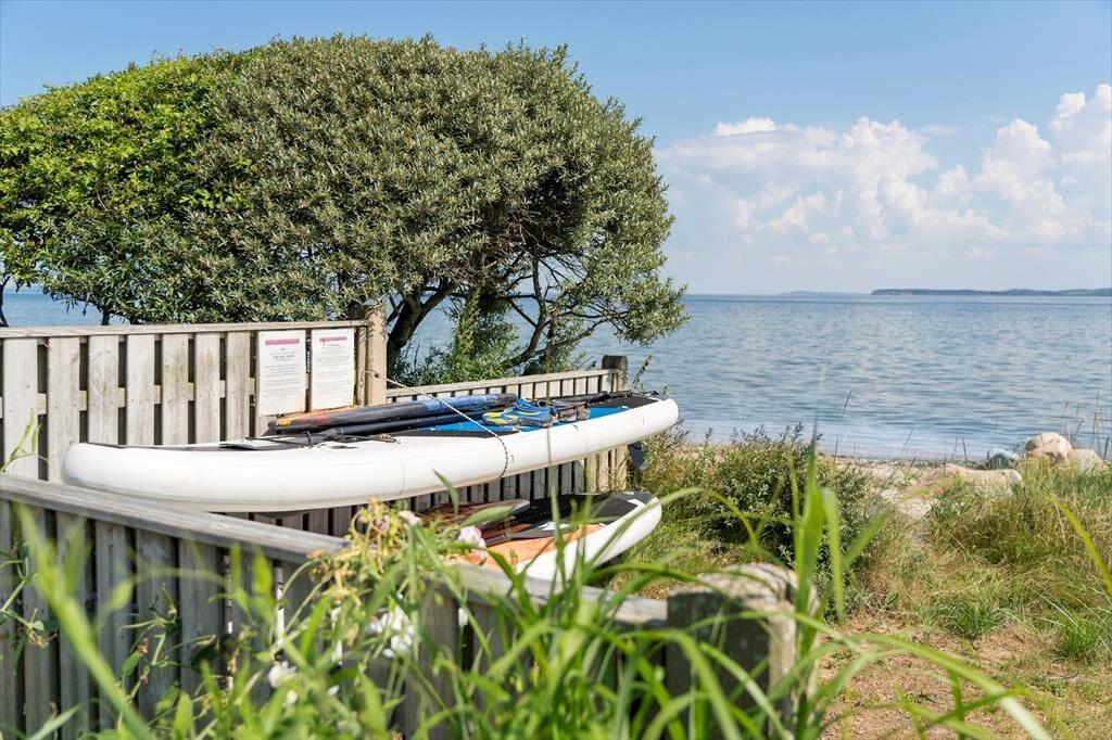I forhaven ligger en vestvendt havestue, en overdækket terrasse og en carport – men selvom det er dejligt at være her, foretrækker I sikkert at opholde jer på østsiden ud mod vandet. Her venter der jer nemlig den skønneste have med flere terrasseområder og selvfølgelig jeres private strand. Er står paddleboard og robåd til rådighed, så I kan få alt det bedste ud af feriens friluftsstunder. Solopgangen er betagende fra grunden, og om aftenen kan I sætte jer ved baren i ”strandhuset”. Det er en overdækket terrasse, som også har en beach bed, hvor I kan ligge og nyde synet af fjordens glimtende vand.