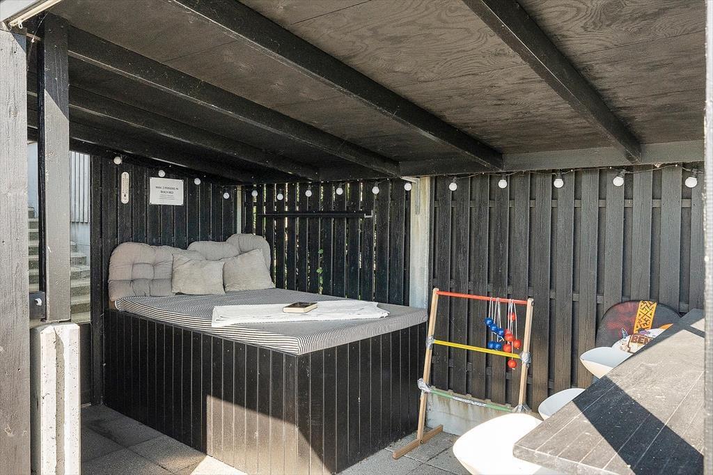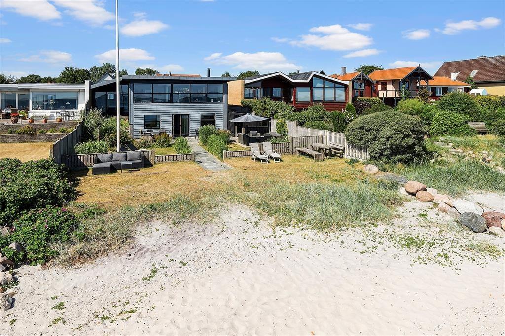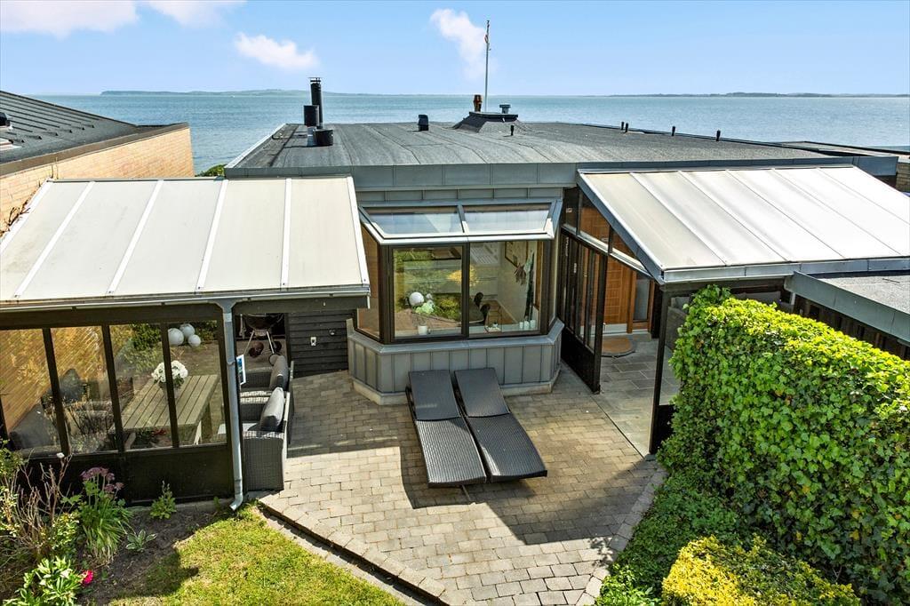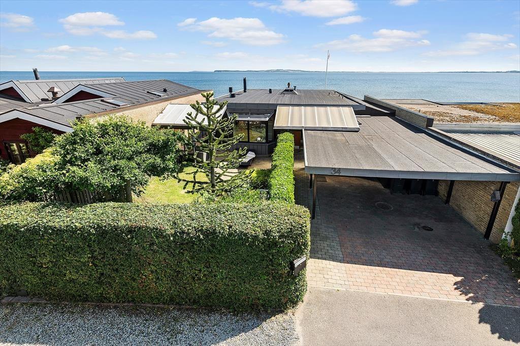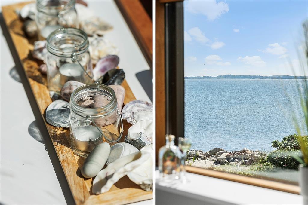 I forhaven ligger en vestvendt havestue, en overdækket terrasse og en carport – men selvom det er dejligt at være her, foretrækker I sikkert at opholde jer på østsiden ud mod vandet. Her venter der jer nemlig den skønneste have med flere terrasseområder og selvfølgelig jeres private strand. Er står paddleboard og robåd til rådighed, så I kan få alt det bedste ud af feriens friluftsstunder. Solopgangen er betagende fra grunden, og om aftenen kan I sætte jer ved baren i ”strandhuset”. Det er en overdækket terrasse, som også har en beach bed, hvor I kan ligge og nyde synet af fjordens glimtende vand.