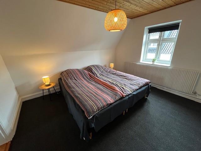 Dette hyggelige byhus på 102 m² ligger centralt i Nykøbing Mors, i et roligt område med kort afstand til byens faciliteter. Huset er indrettet med to soveværelser på første sal – det ene som gennemgangsværelse. Begge værelser har dobbeltsenge, som kan adskilles til enkeltsenge efter behov.