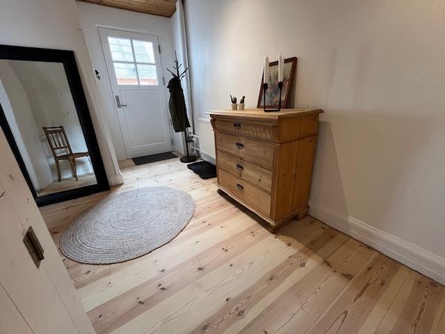 I stueetagen finder du en indbydende stue med brændeovn, en lys spisestue, et fuldt udstyret køkken samt et badeværelse med bruseniche samt bryggers med vaskemaskine. Der er desuden internet og Chromecast til rådighed, så du nemt kan streame dine yndlingsprogrammer.