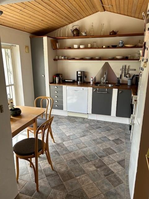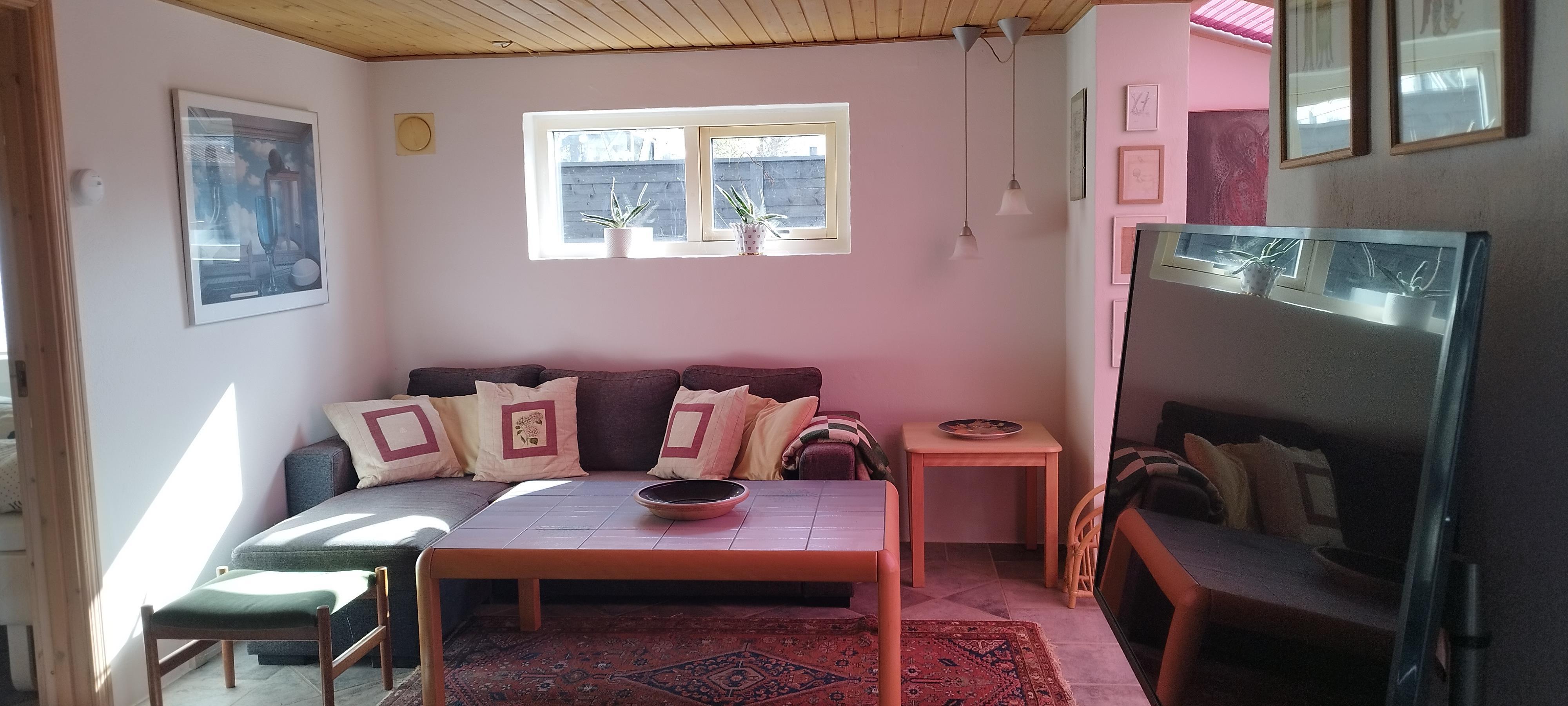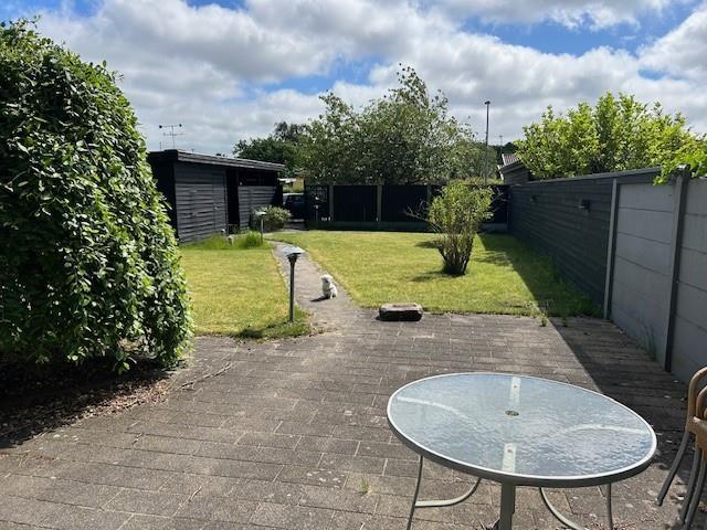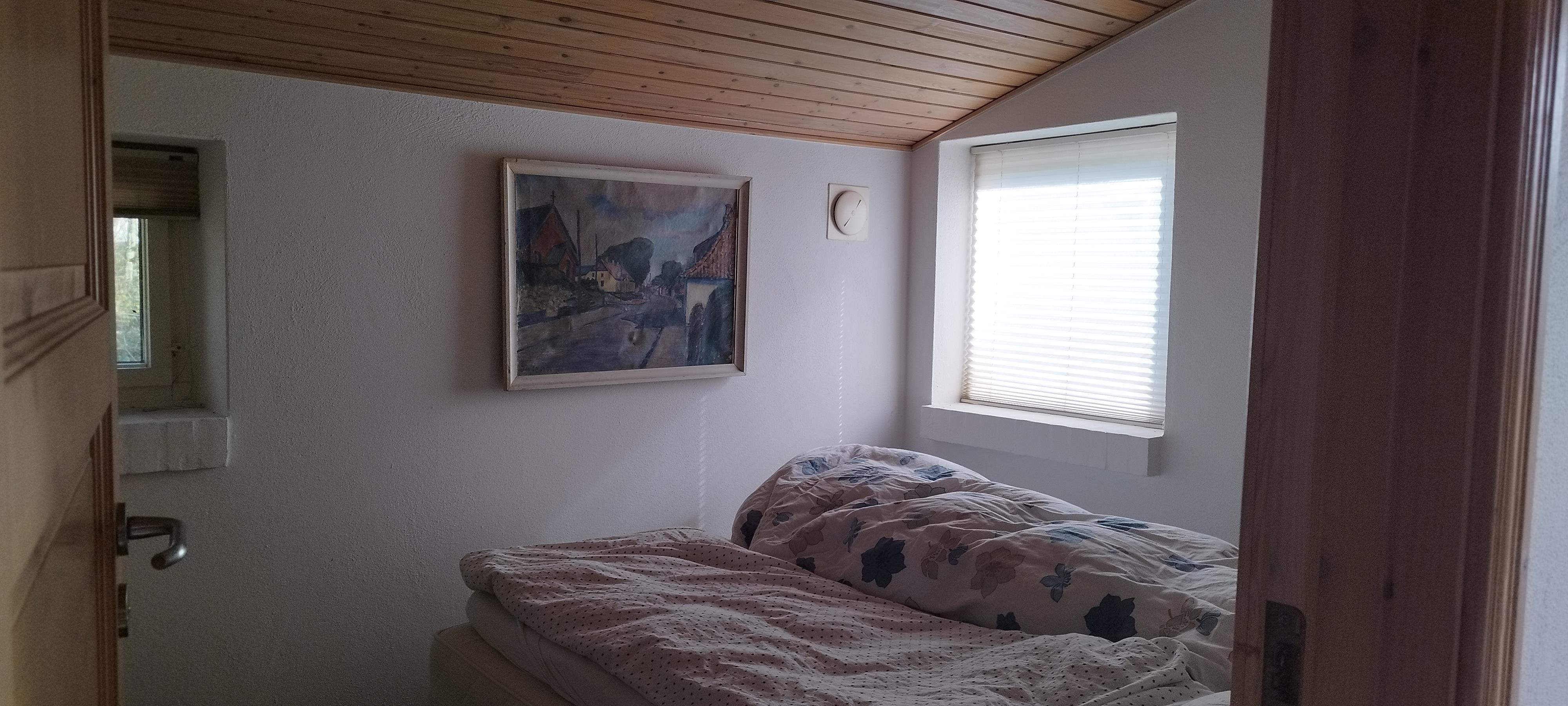 Dejligt sommerhus placeret på en rolig vej tæt på både strand og by. Huset har plads til 4 personer, fordelt på 2 værelser med dobbeltsenge. Bemærk, at disse ligger i direkte forlængelse af hinanden, så man skal gennem de første soveværelse, for at komme til nummer 2. Huset har både stue med spise plads, samt opholdsstue i forlængelse heraf. Huset har derudover et flot funktionelt køkken, badeværelse med bruseniche. Der er en lille lukket have med terrasse og udebruser.