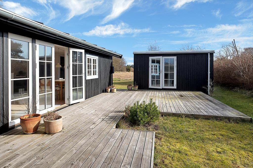 Dette flotte sommerhus er indrettet med entre, dejligt køkken og hyggelig stue med brændeovn. Derudover er der tre soveværelser, to af dem med dobbeltsenge. Det sidste med enkelt køje. Til huset hører et lyst og rummeligt anneks med to enkeltsenge. Huset har ikke fjernsyn, men her er mulighed for at koble helt af fra hverdagen. Ønsker I afslapning og familiehygge, så er der rig mulighed for det. Til huset hører der både en stor, åben terrasse, hvor I f.eks. kan slappe af med en god bog. Huset ligger på en flot naturgrund.