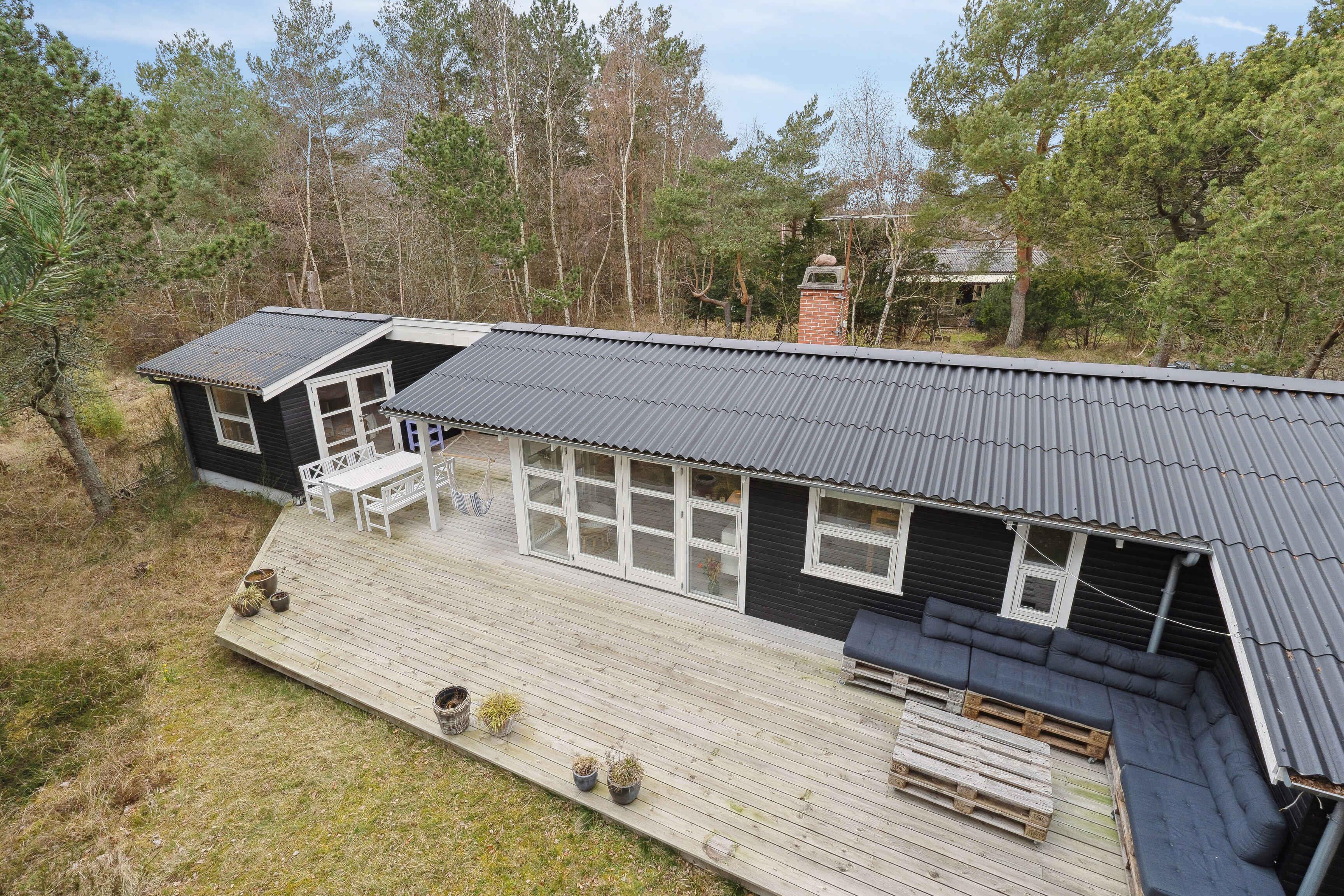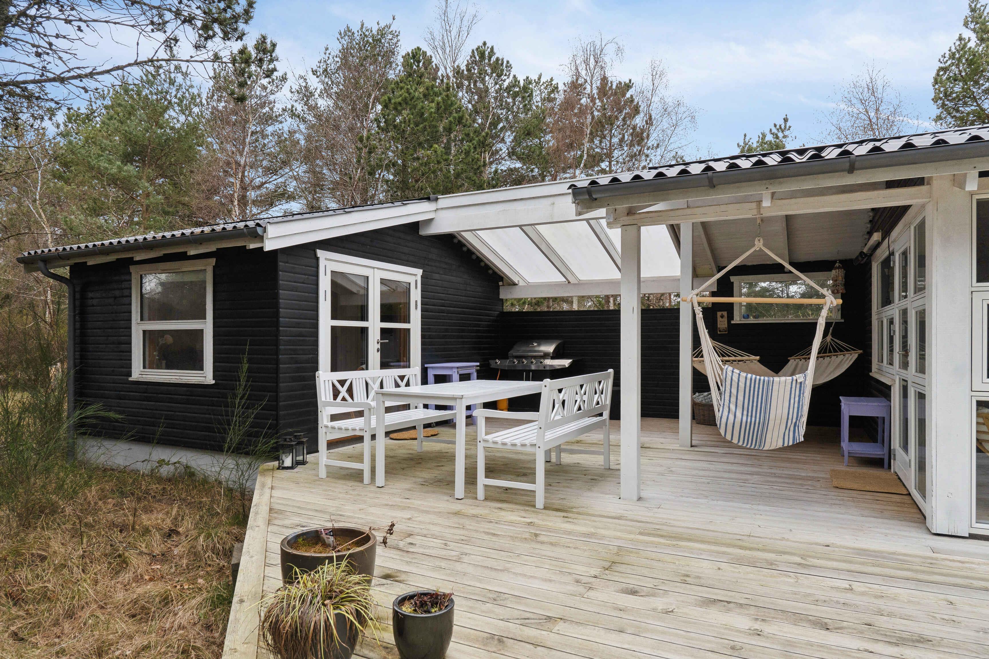 Dette moderne og hyggelige sommerhus byder på i alt 4 soveværelser (3 i sommerhuset og 1 i anneks) og plads til op til 8 personer, dog maksimalt 6 voksne. Huset er perfekt til familier eller vennepar, der søger en afslappende ferie. Med 75 m2 fordelt på et åbent køkkenalrum og en stor stue, får du masser af plads til samvær og hygge. De store vinduer i stuen giver et fantastisk udsyn til den private have. Huset har også et anneks, der kan bruges til ekstra soveplads. Beliggenheden er ideel, kun 200 meter fra vandet, og området byder på rolige strande og naturskønne omgivelser, perfekt til afslapning. Du kan nyde livet ved kysten med mulighed for vandreture og udendørs aktiviteter. Det er et fredeligt område, der tilbyder både ro og nærhed til lokale faciliteter. Udendørs kan du slappe af på den overdækkede terrasse eller tage en opfriskende tur under den udendørs bruser. Den lukkede have giver mulighed for børnevenlig leg og afslapning. Sommerhuset giver dig det bedste af både komfort og natur, med et åbent og moderne interiør, der gør det let at føle sig hjemme. Det er det perfekte udgangspunkt for en ferie, hvor du kan nyde både havet og den omkringliggende natur. Køkkenet er veludstyret og du finder bl.a. en Nespresso maskine og en stempelkande. Ungdomsgrupper skal være mindst 25 år.